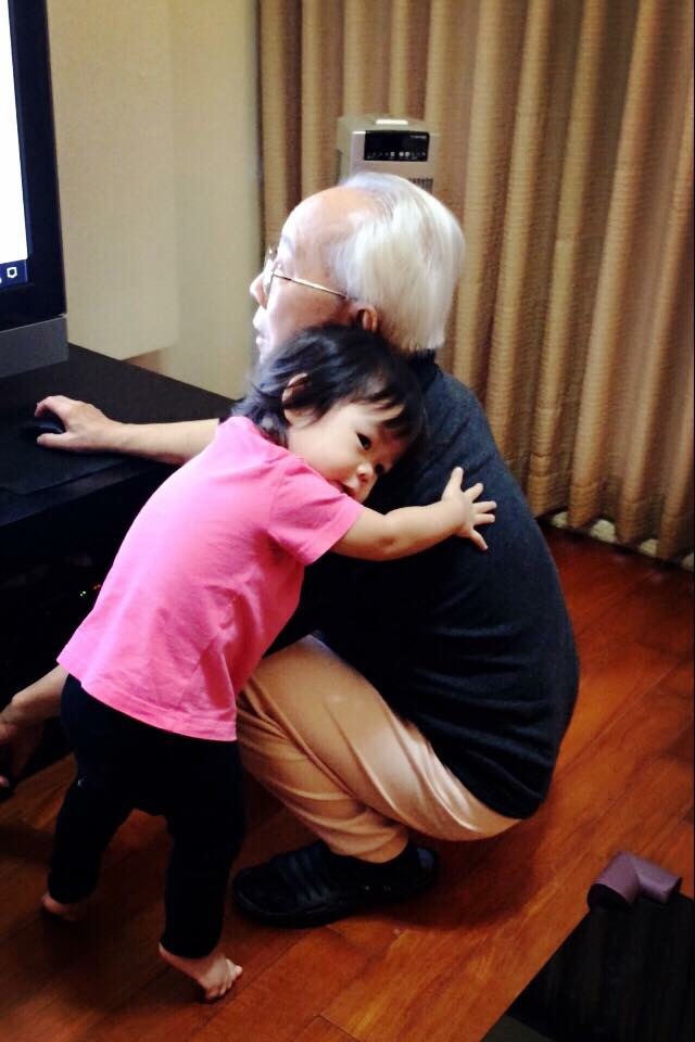 圖片是馬屁精小溫小姐,回來後無時無刻纏著外公討好賣乖,掂著腳尖也要摟外公。