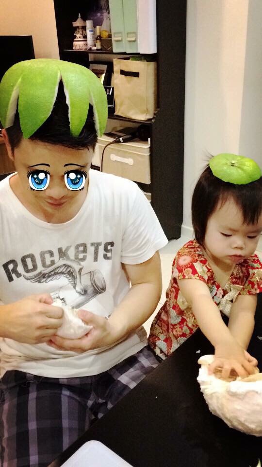 圖片是搶食柚子的倆父女,幸好還有怡保的柚子肉細汁多,香甜可口,撫慰外籍新娘思鄉的心情。