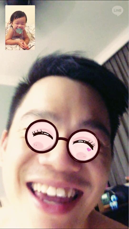 圖片是遠距離中的小情侶在睡前視訊,再度笑的見牙不見眼。