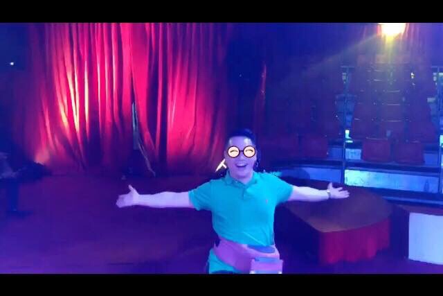圖片是戴著揹巾跑上馬戲團舞台表演的少爺,其實他那天沒有喝酒啊?(還是偷喝了?)