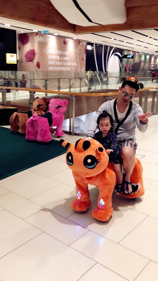 圖片是每次去商場騎動物,都表現得比女兒還開心的爸爸。(然後那帽子跟墨鏡太合理了!)