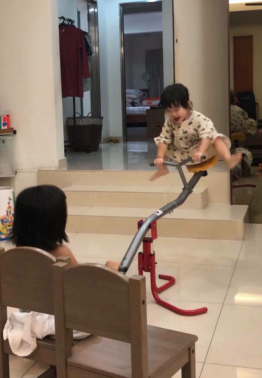 圖片是和小姐姐玩室內蹺蹺板非常快樂的小溫小姐,媽媽希望你多向這些優秀姐姐們學習!