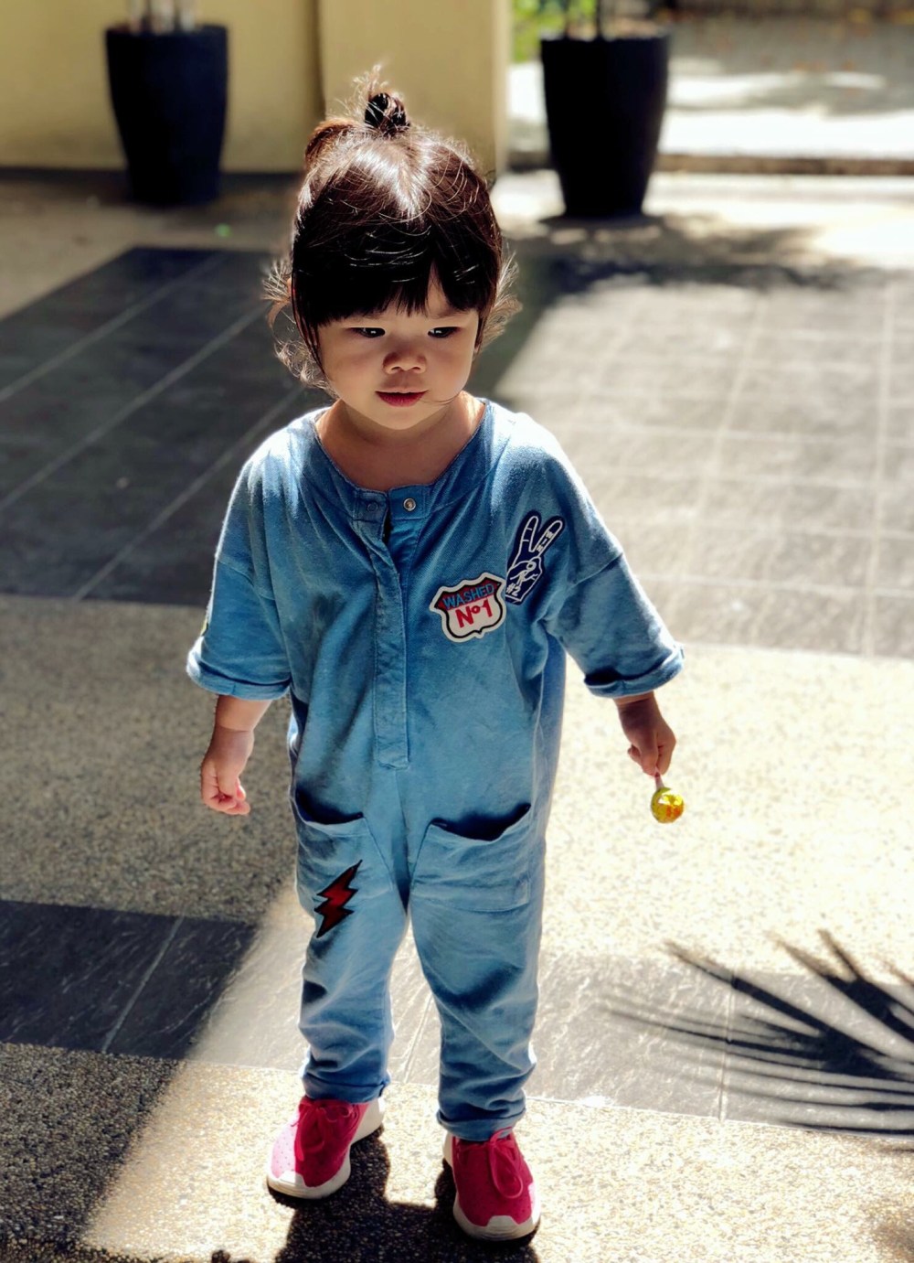 圖片是時時都有新衣穿的小溫小姐。比起夢幻小公主裝,媽媽覺得這種搖滾工作服更適合她。