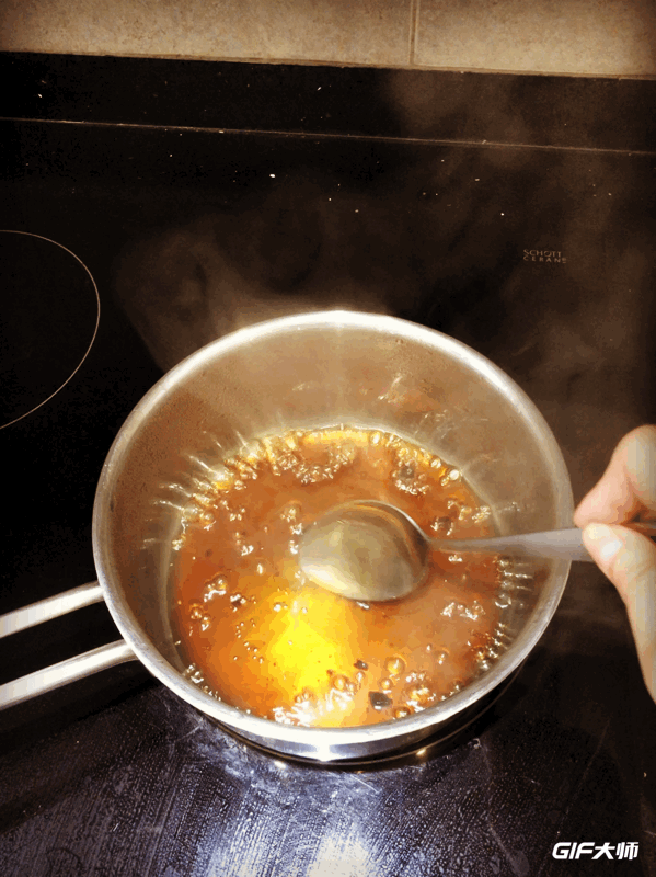 1. 將黑糖加入水當中煮到滾。
