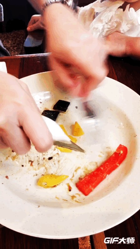 娘娘自己切水餃,自由轉換餐具非常順手。