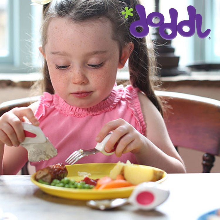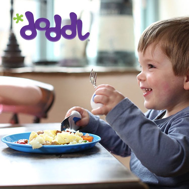 配合小孩小手小嘴設計的doddl餐具,優秀的直覺式使用形狀不用學馬上上手,輕鬆不費力就開始自己吃。