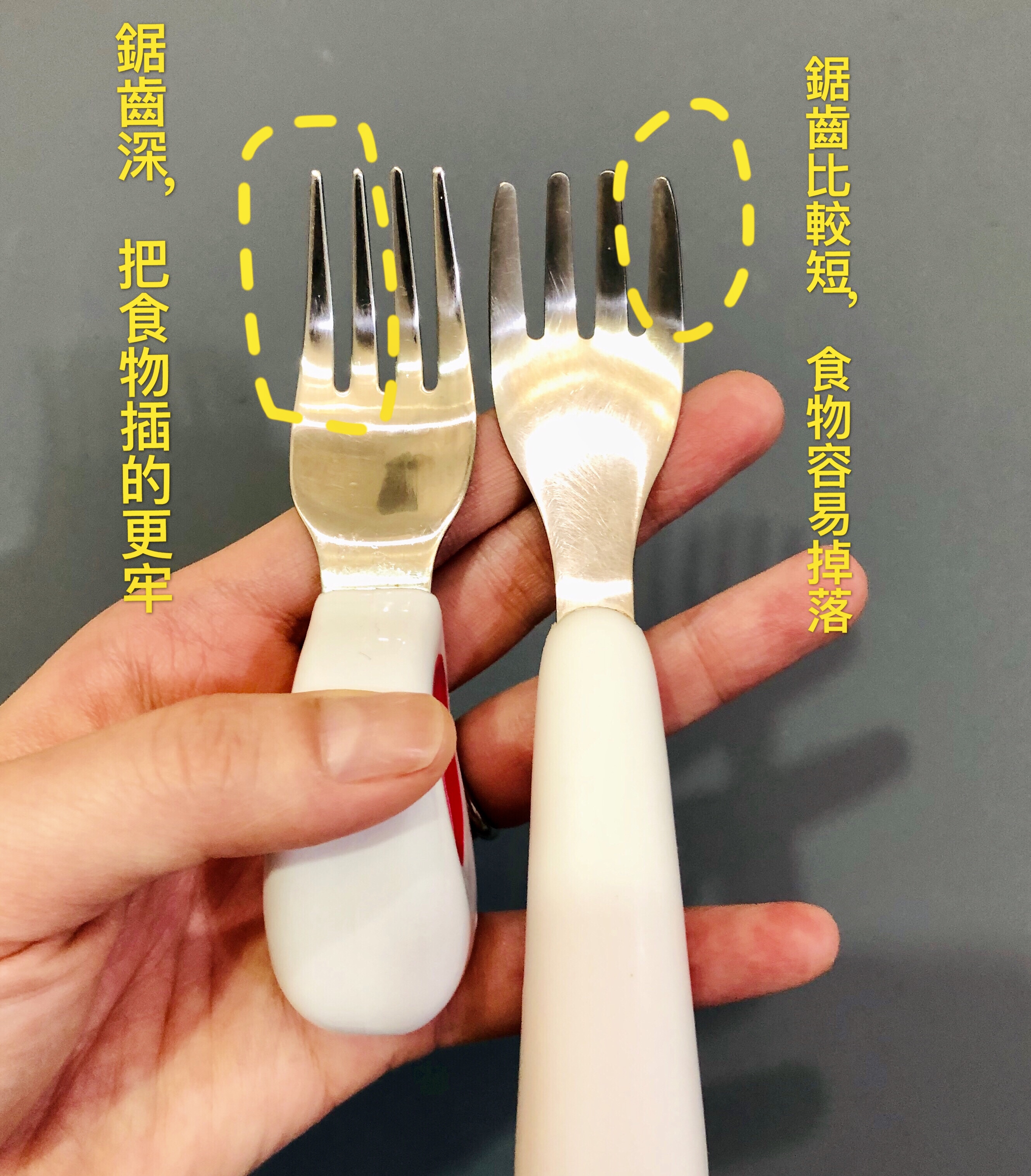 鋸齒比之前的餐具長多了,所以能把食物插得更牢送進口中。