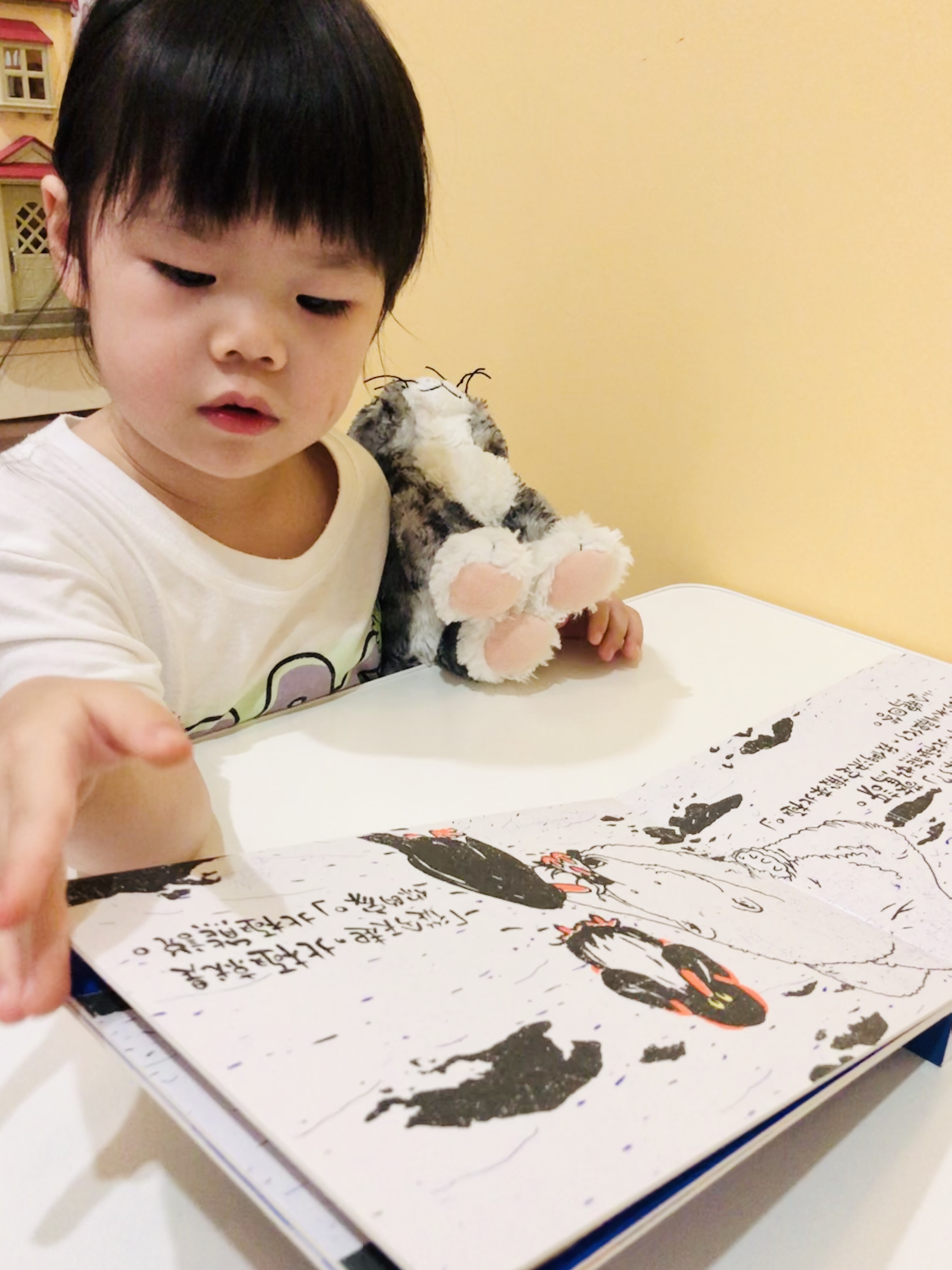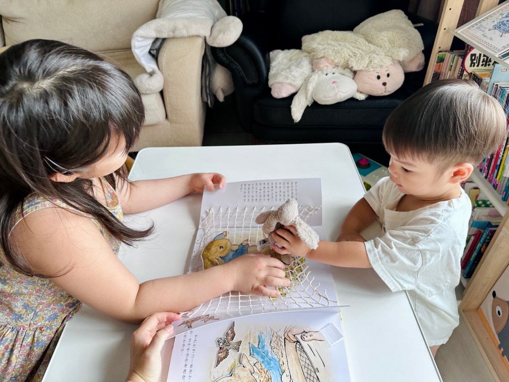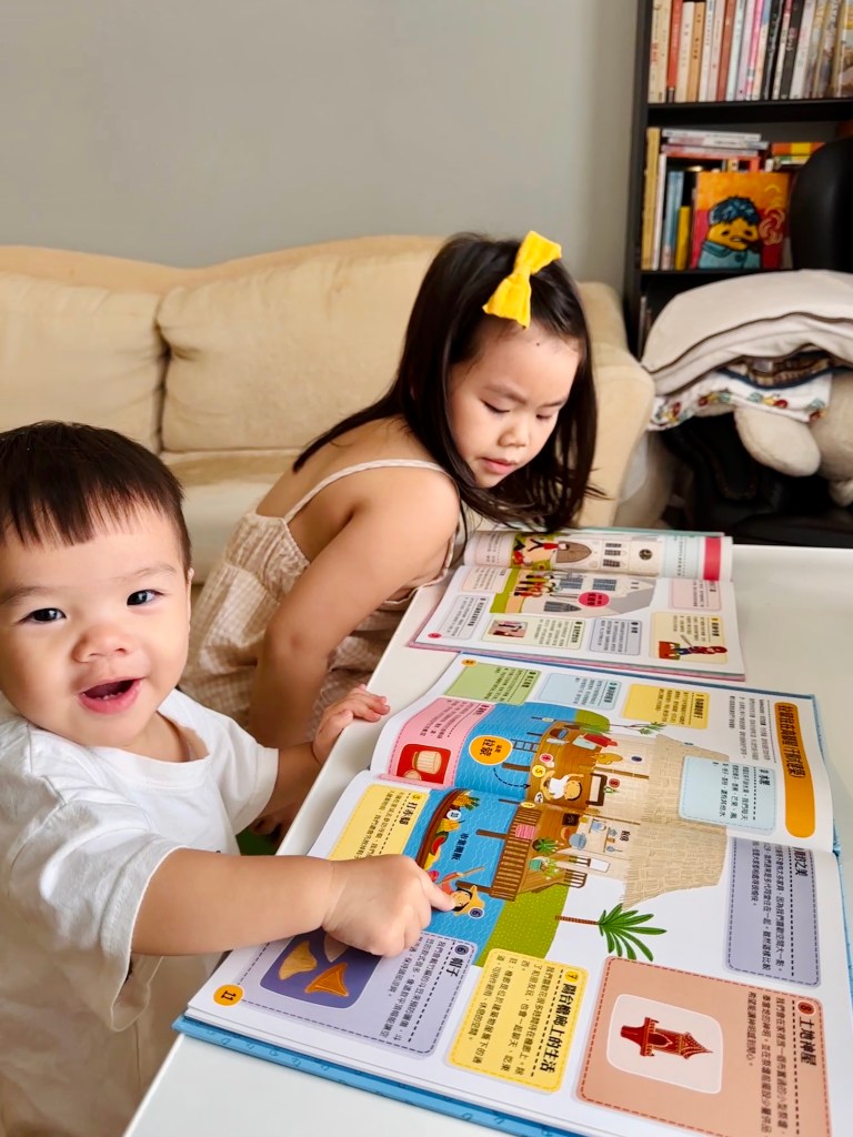 這本書建議最少三歲才能自己閱讀唷,不然小小孩的破壞力很驚人,我家是姊姊帶著弟弟讀▼