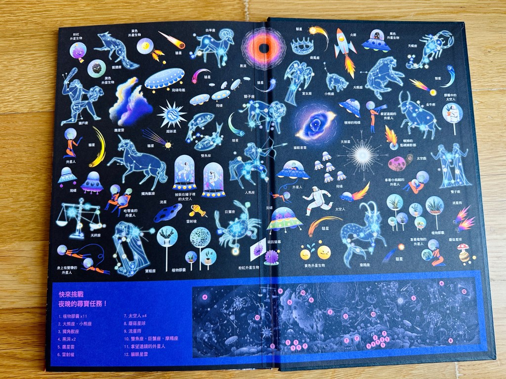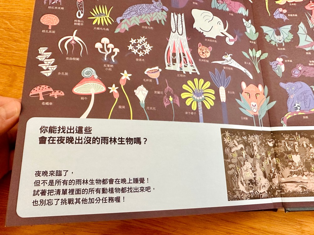 夜光找一找系列套書是孩子能邊打發時間,邊吸收知識的有趣繪本,都市、雨林及太空都描繪的精細而豐富,各種尋寶任務,培養孩子專注及觀察力,非常推薦給六歲以上的孩子唷。