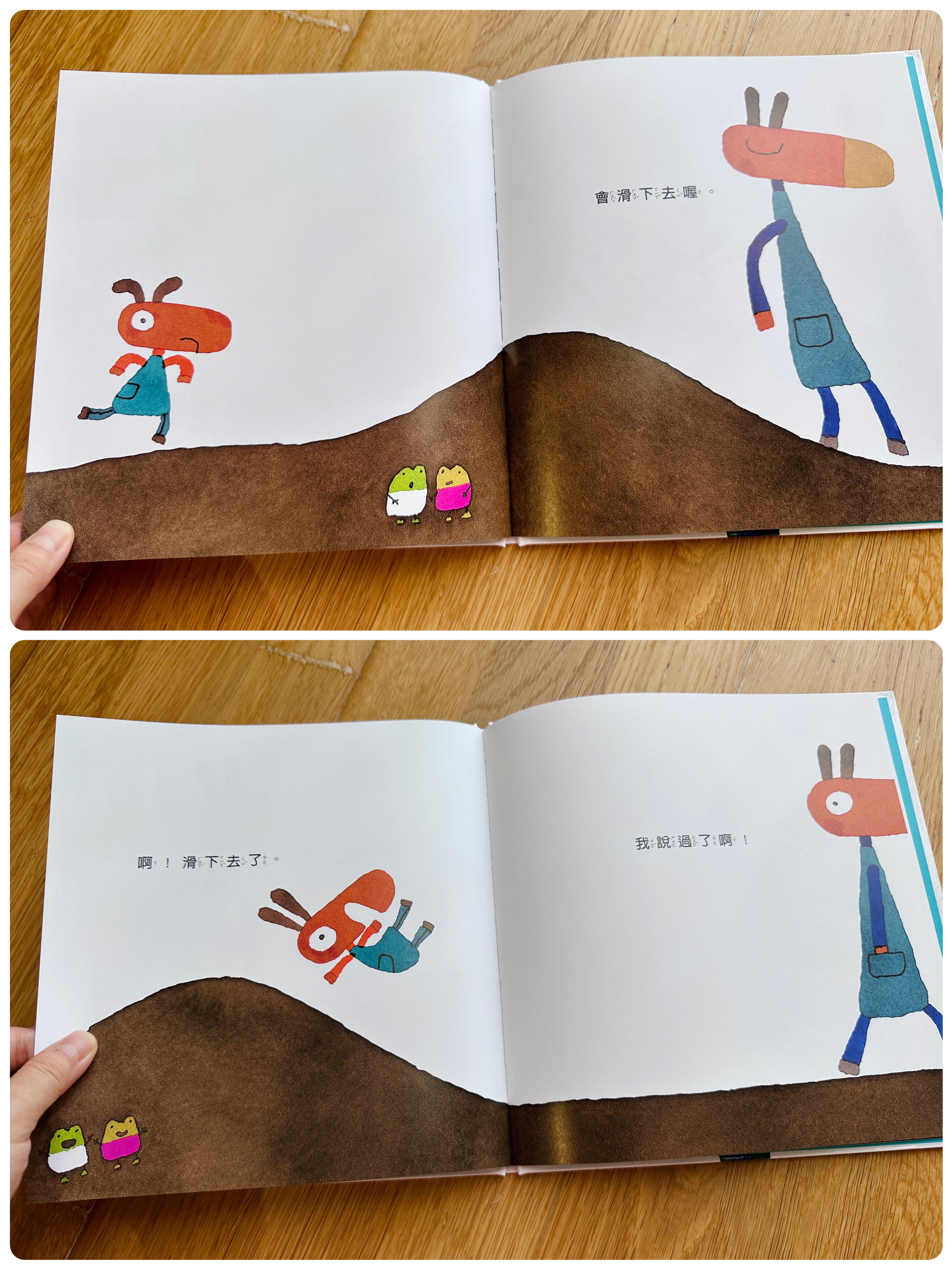 經典繪本小金魚逃走了的作者五味太郎的作品,畫風乾淨充滿童趣,對白簡單但出乎意料的很戳孩子的笑點,是一套很可愛的幼童繪本喔。