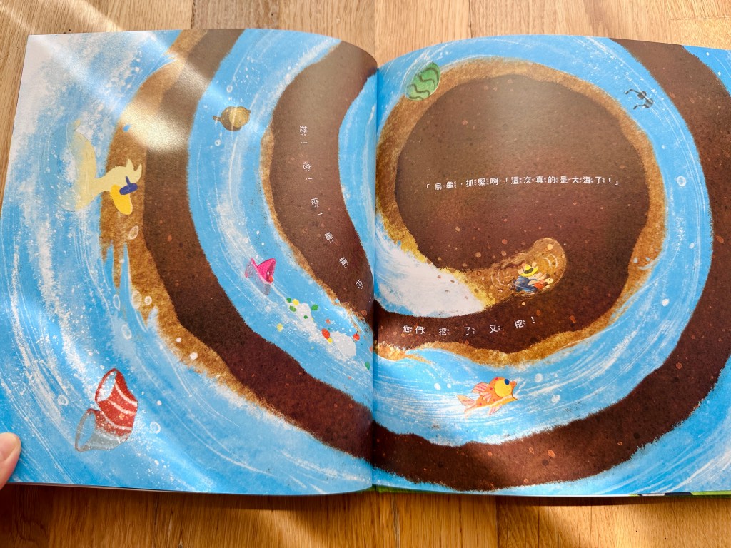 於是他們一直挖一直挖,好像快要到海邊了,但探出頭卻都不是▼