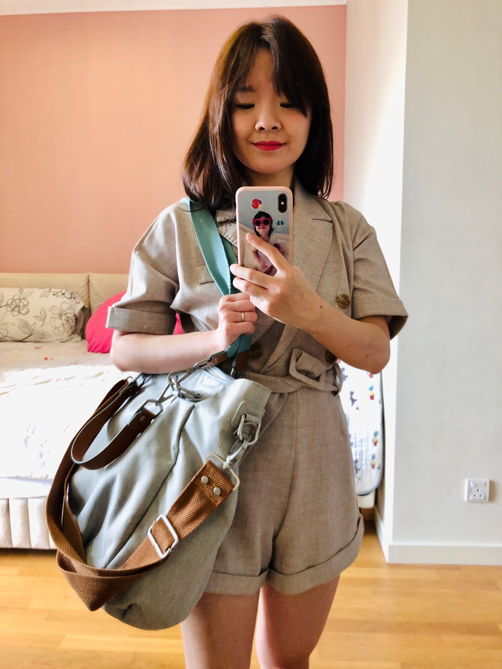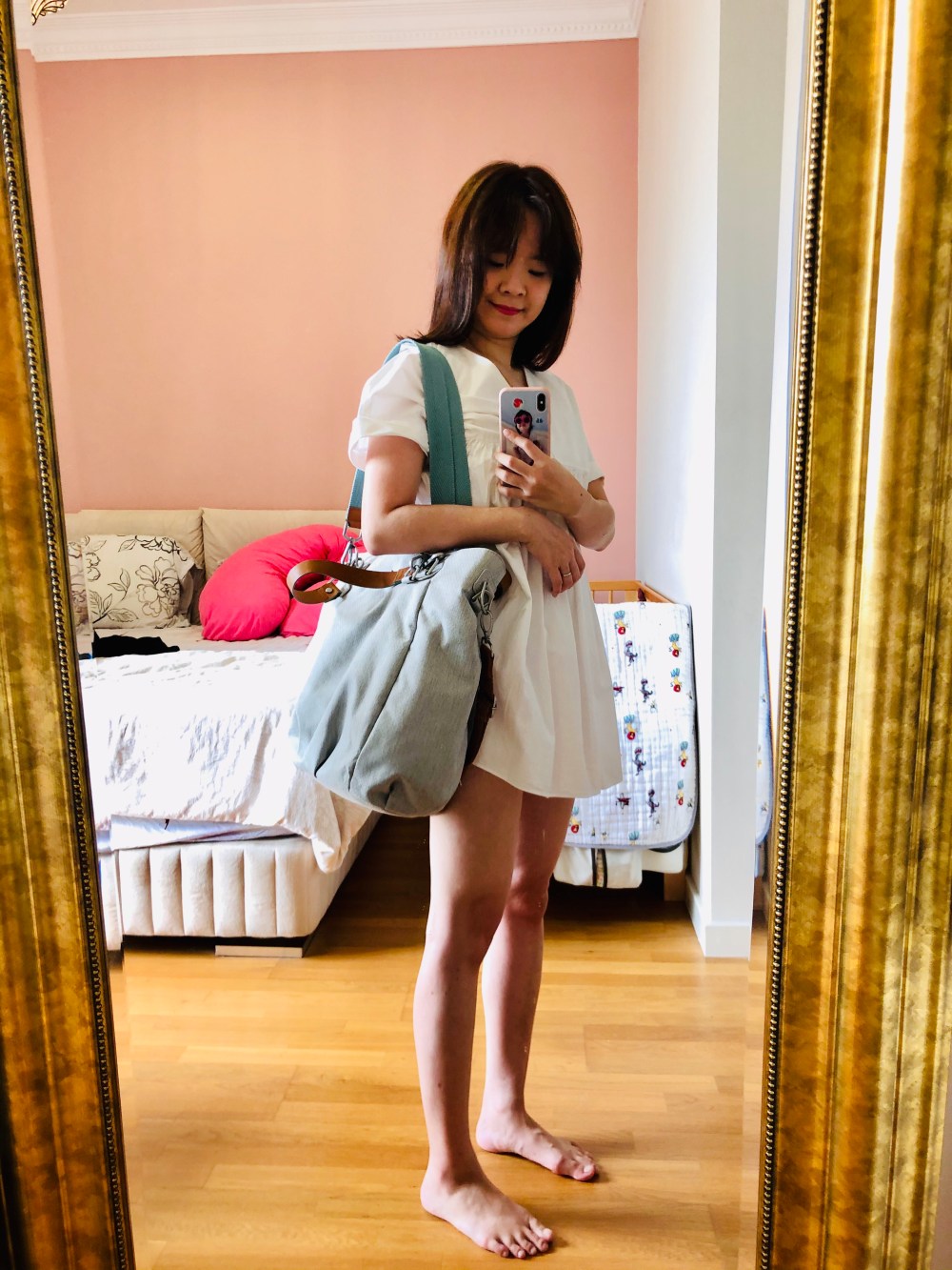 配合不同場合服裝可以有不同的背法(我158cm,斜背稍微有點太長)
