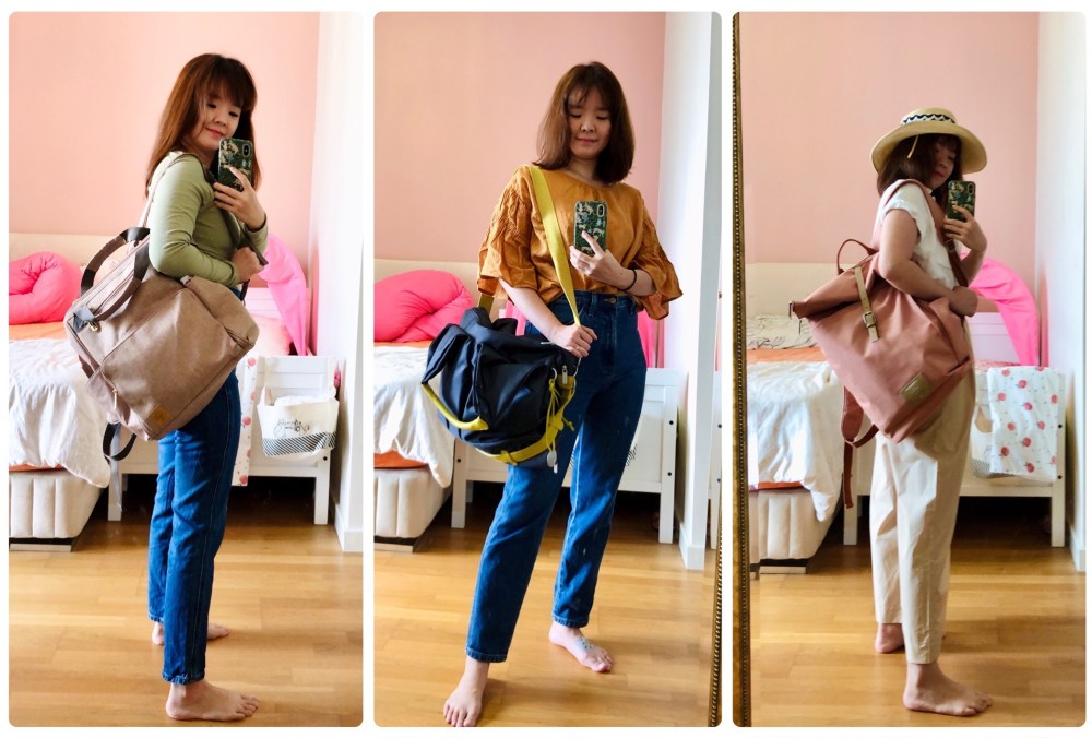 市面上媽媽包大多是亮面防水布的空氣包,雖然不難看,但能選擇的款式有限。