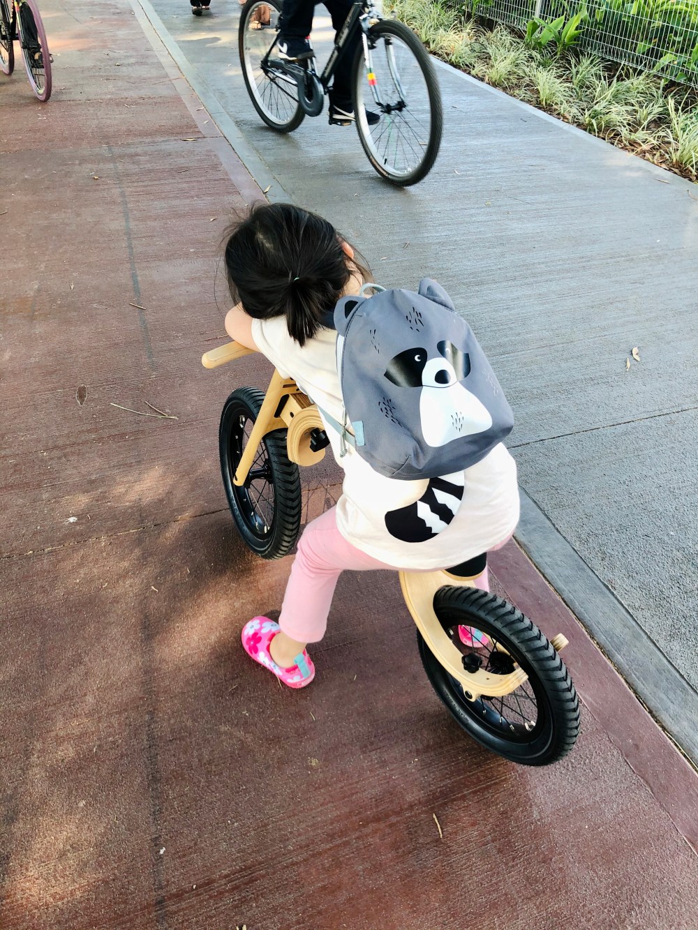 幾次後娘娘越騎越快,她的運動細胞像爸爸,兩三下就上手了飛馳而去。