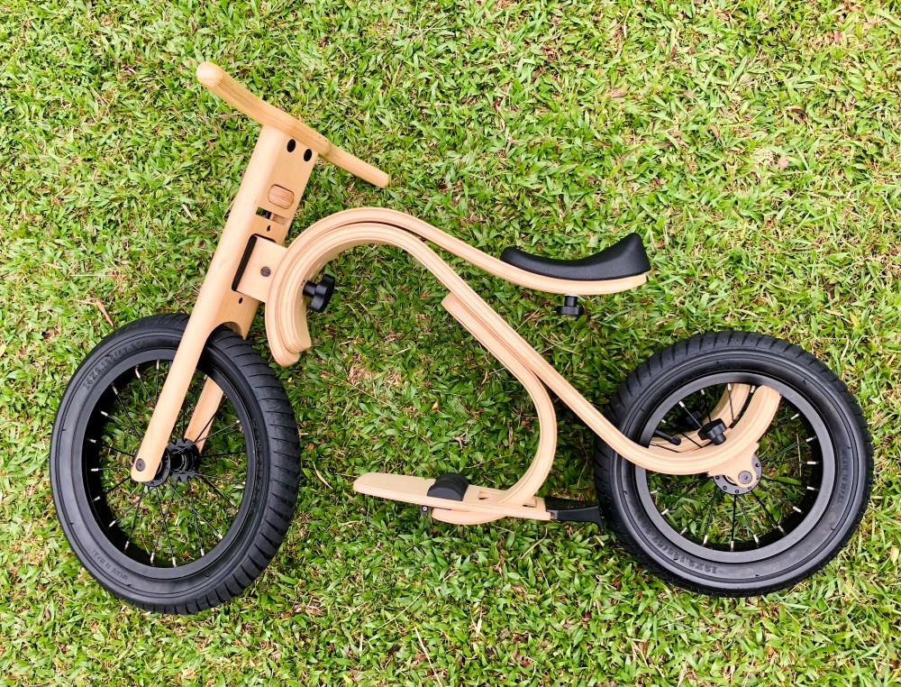 車身能拆換組合成另外造型,伴隨寶貝成長階段學習平衡,訓練肌肉腦力發展,木製車架結合充氣輪胎極具彈性,能達到緩衝避震的效果。