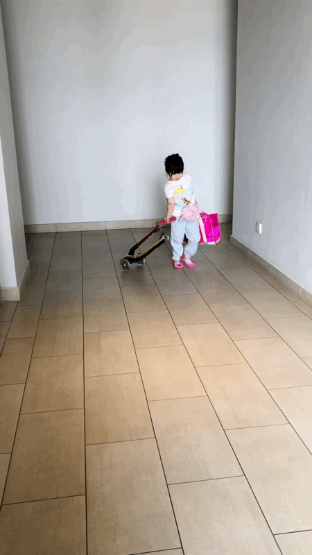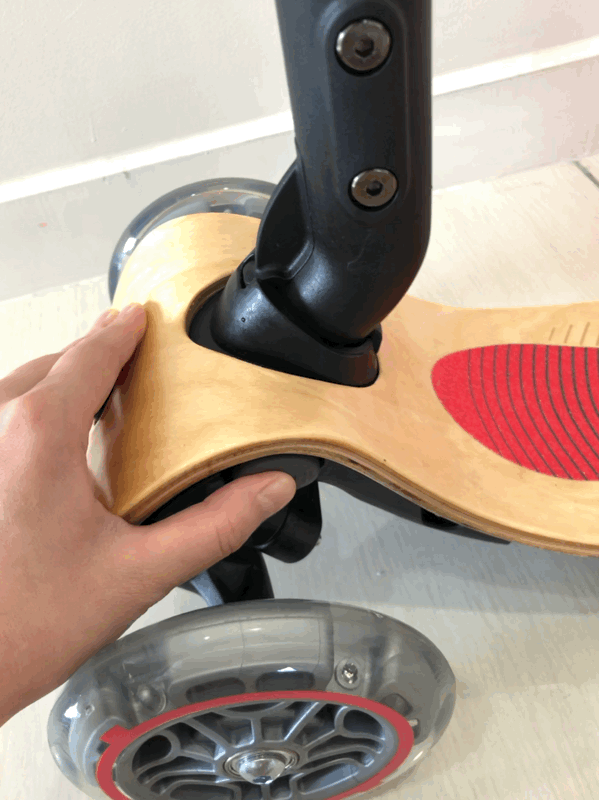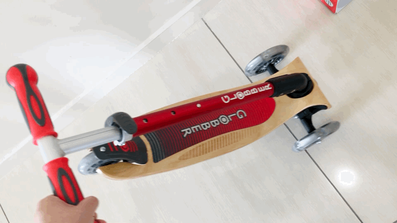 有些滑板車騎起來喀拉喀拉響,GLOBBER滑板車零件組裝細緻,輪子柔軟貼合地面,滑行是很安靜的,給妳們聽聽看。