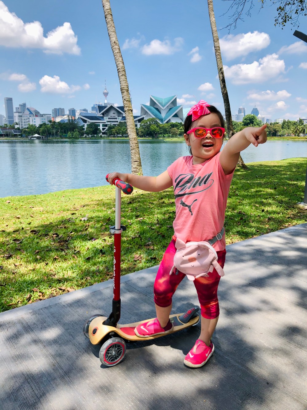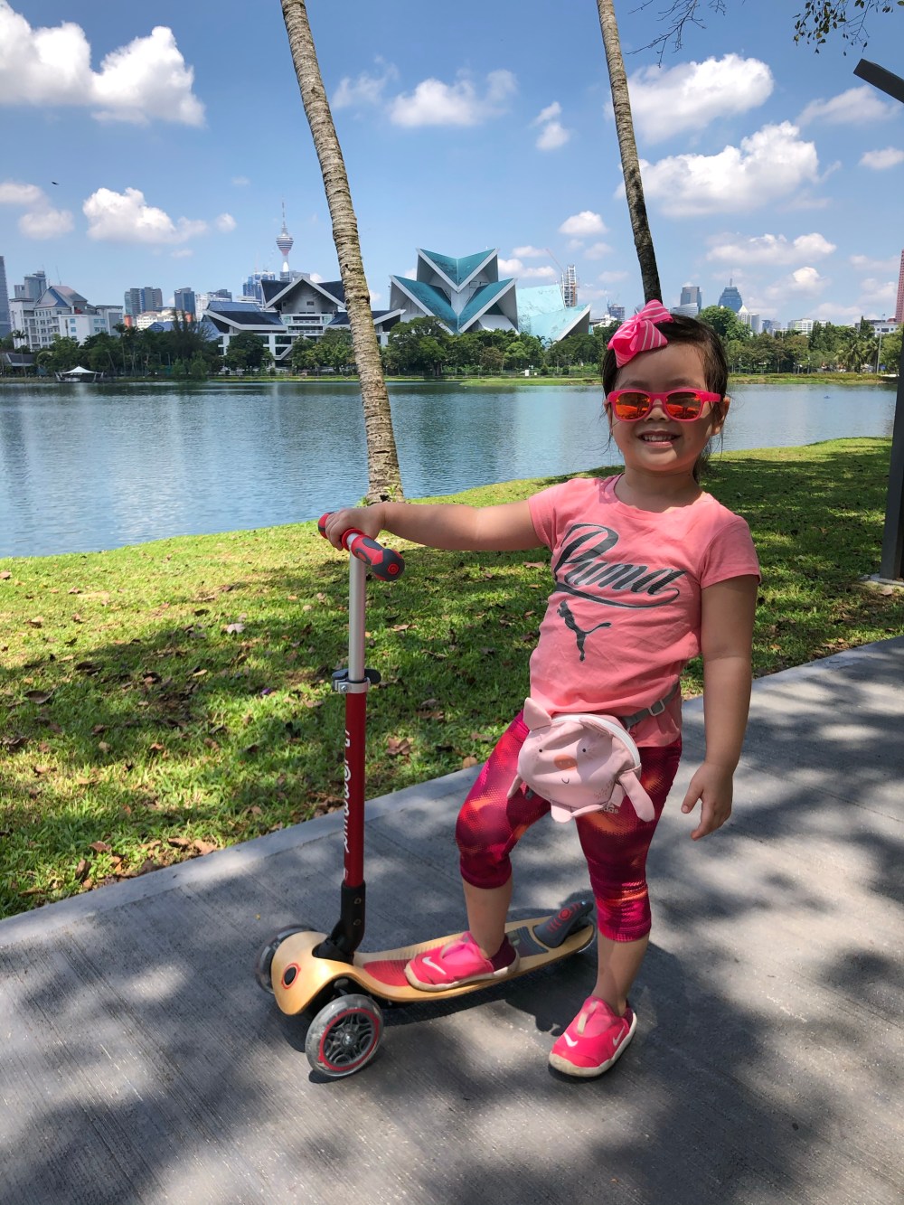 於是到三歲多為止都是騎著滑板車,娘娘的滑板車是法國 GLOBBER,每次照片拍到都有人問,我去年詢問台灣代理商,專門進口腳踏車滑步車的亞克科技能不能合作。