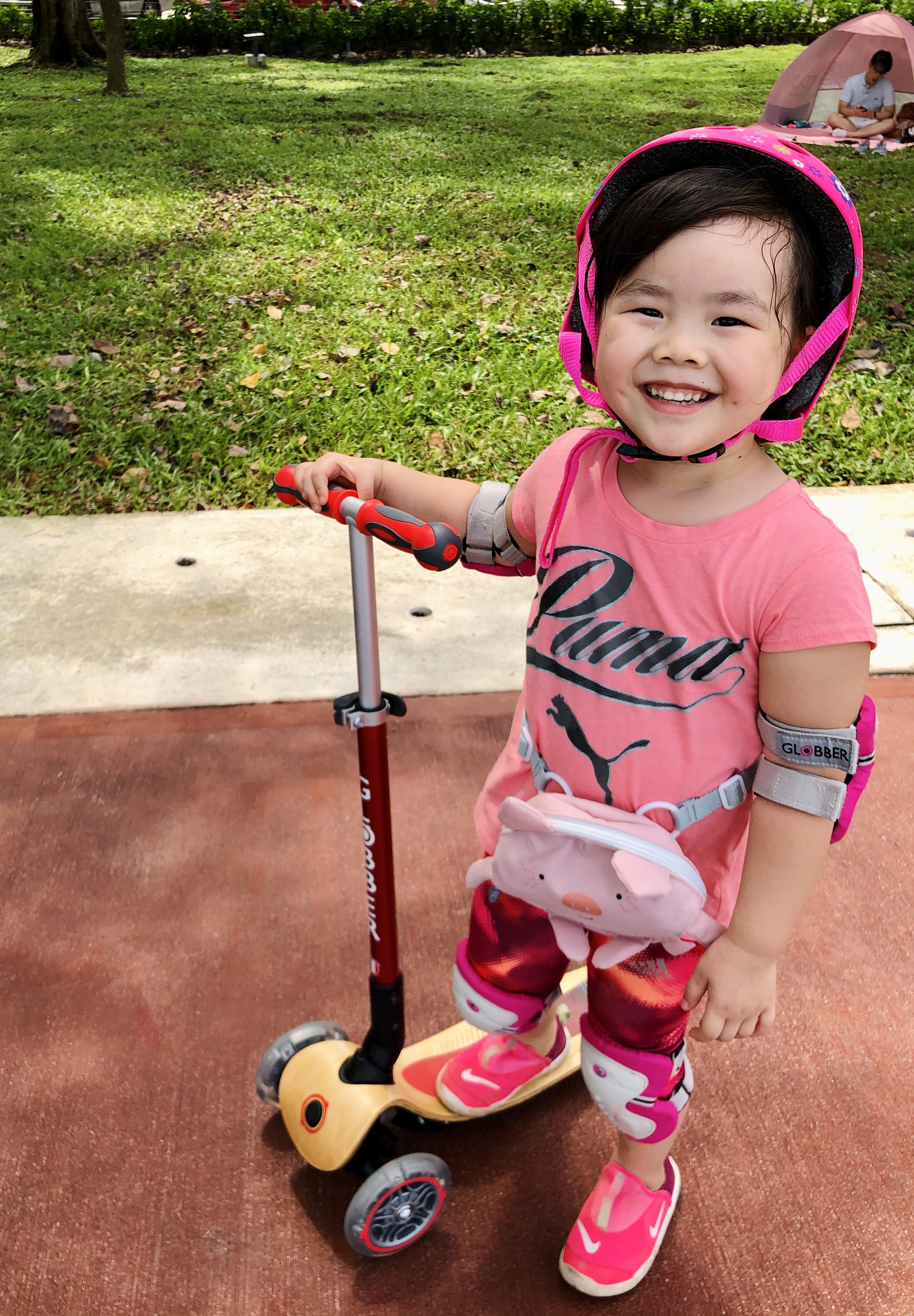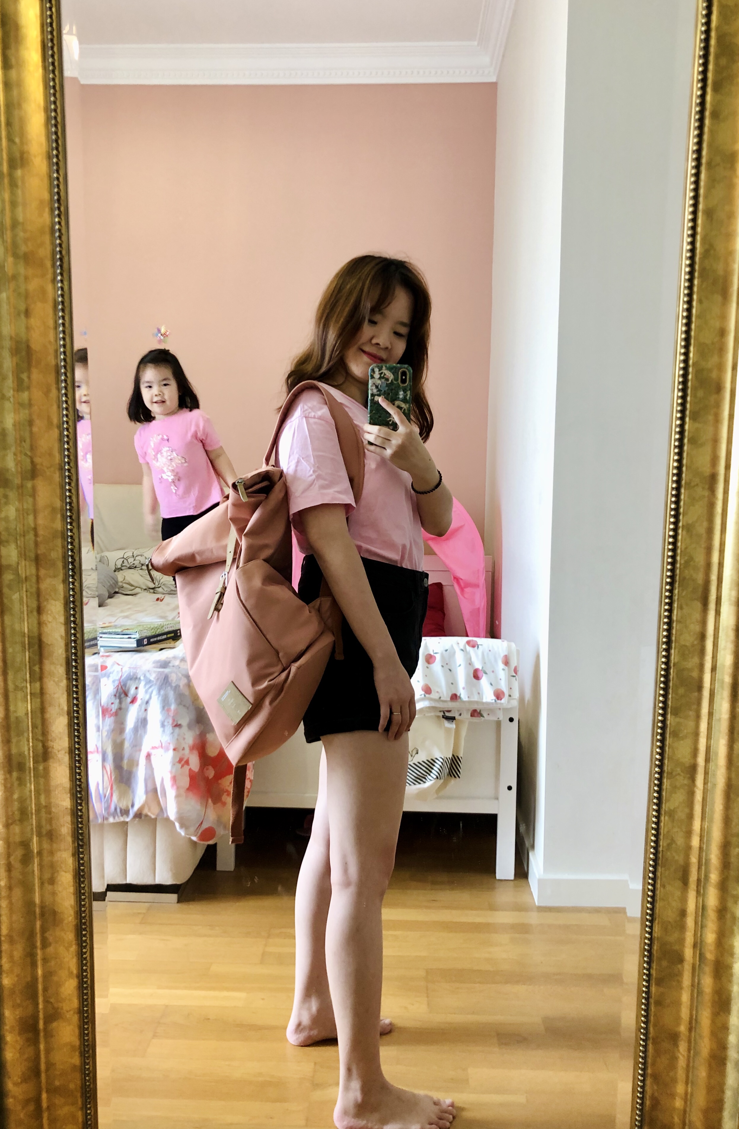雖然是粉色但爸爸背也不突兀,很好看。