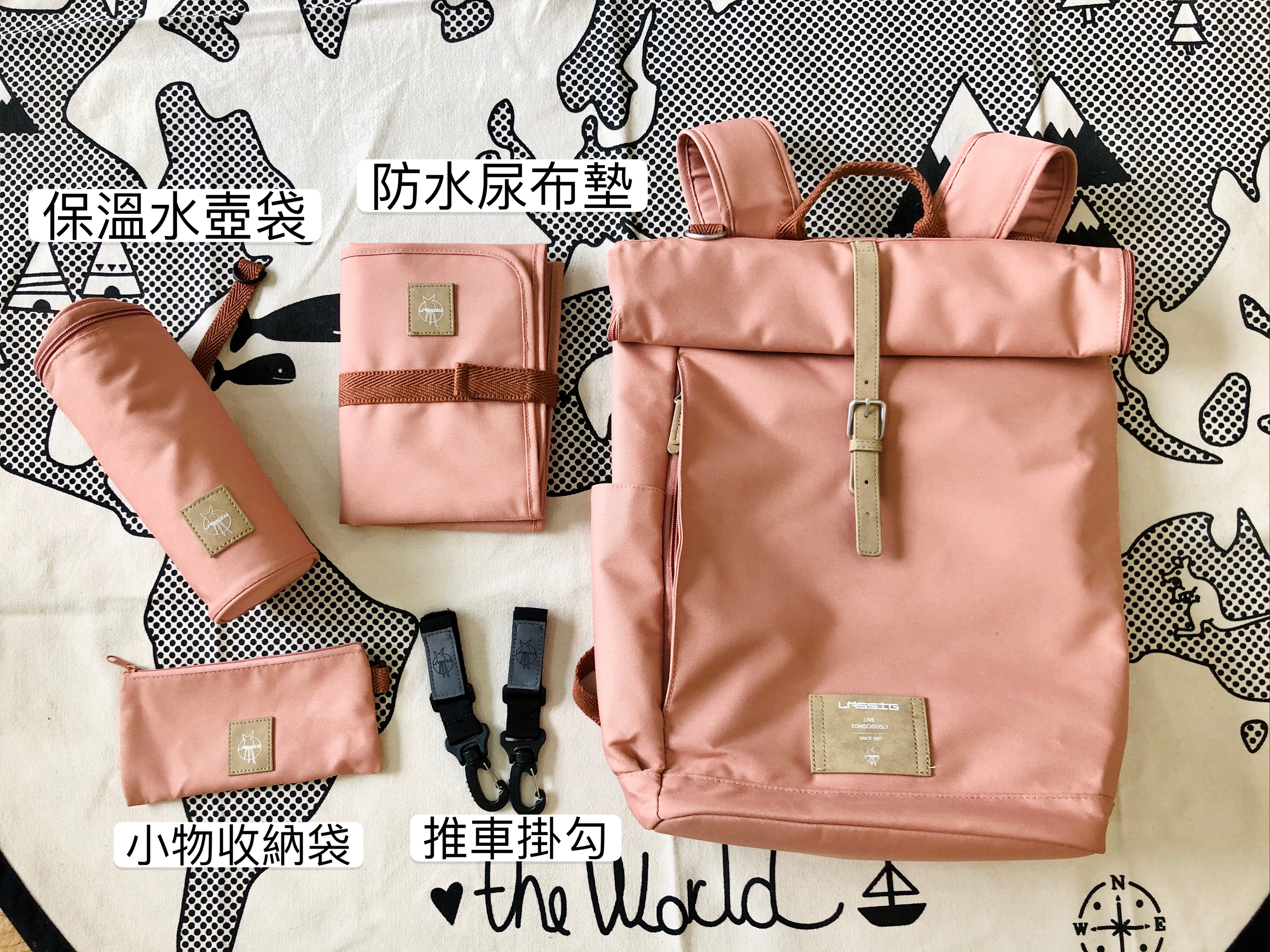今年新款的Lassig卷卷文青風後背媽媽包,與荷蘭環保紡織品牌Waste2Wear 合作,使用38個回收PET寶特瓶再生纖維製造,100%環保無毒材質,給孩子一個美好的地球。
