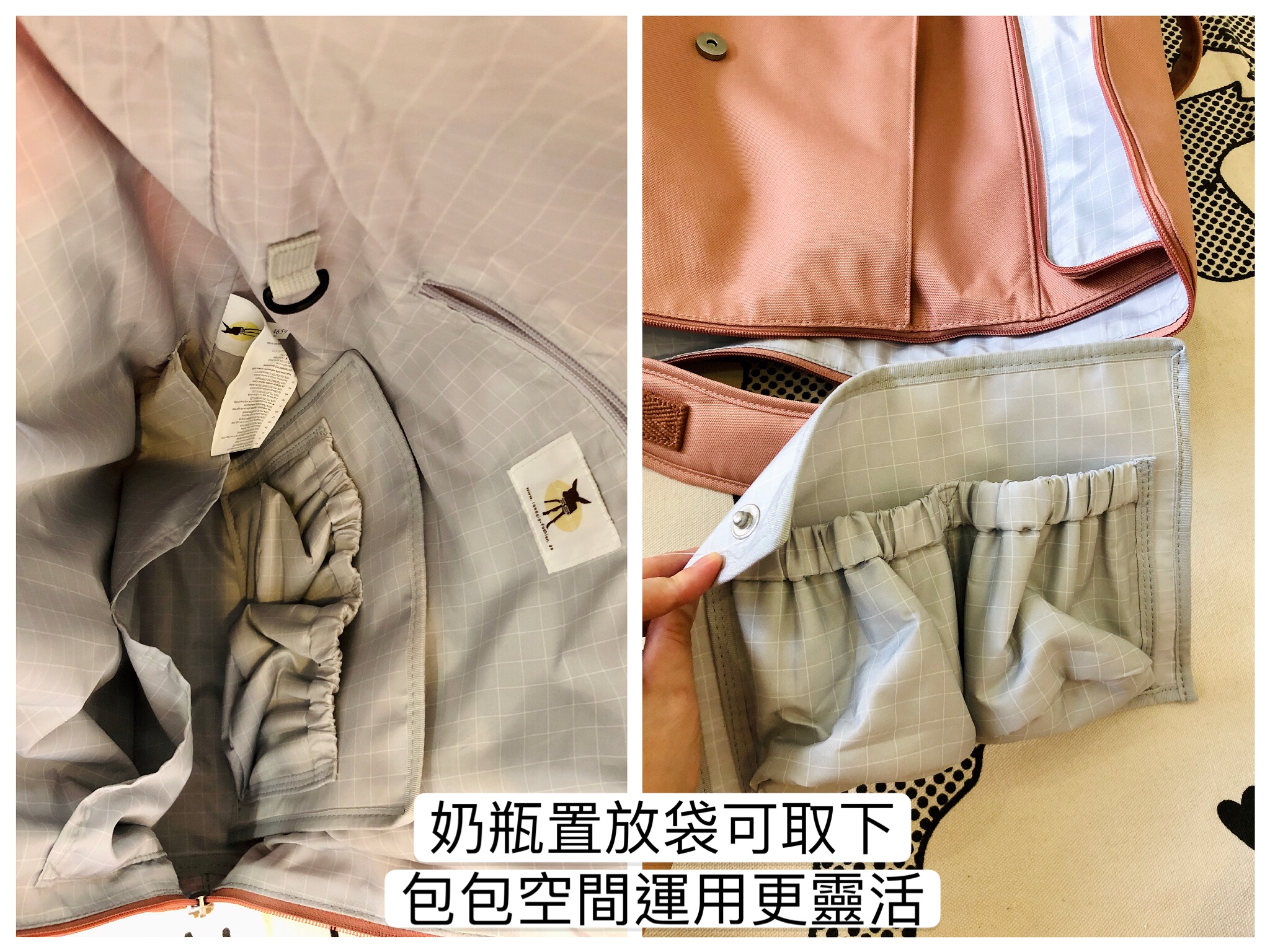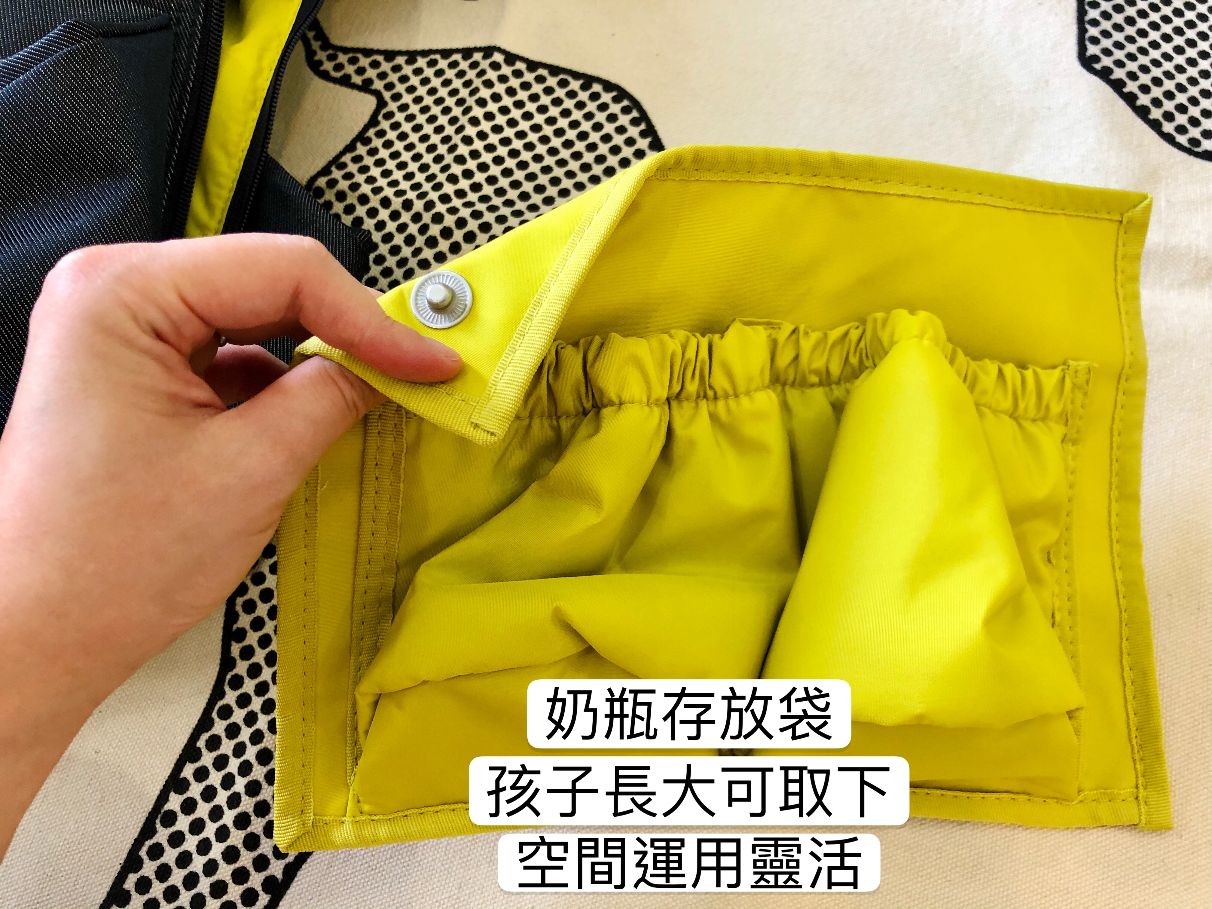 奶瓶收納袋一樣可取下,空間運用很方便。