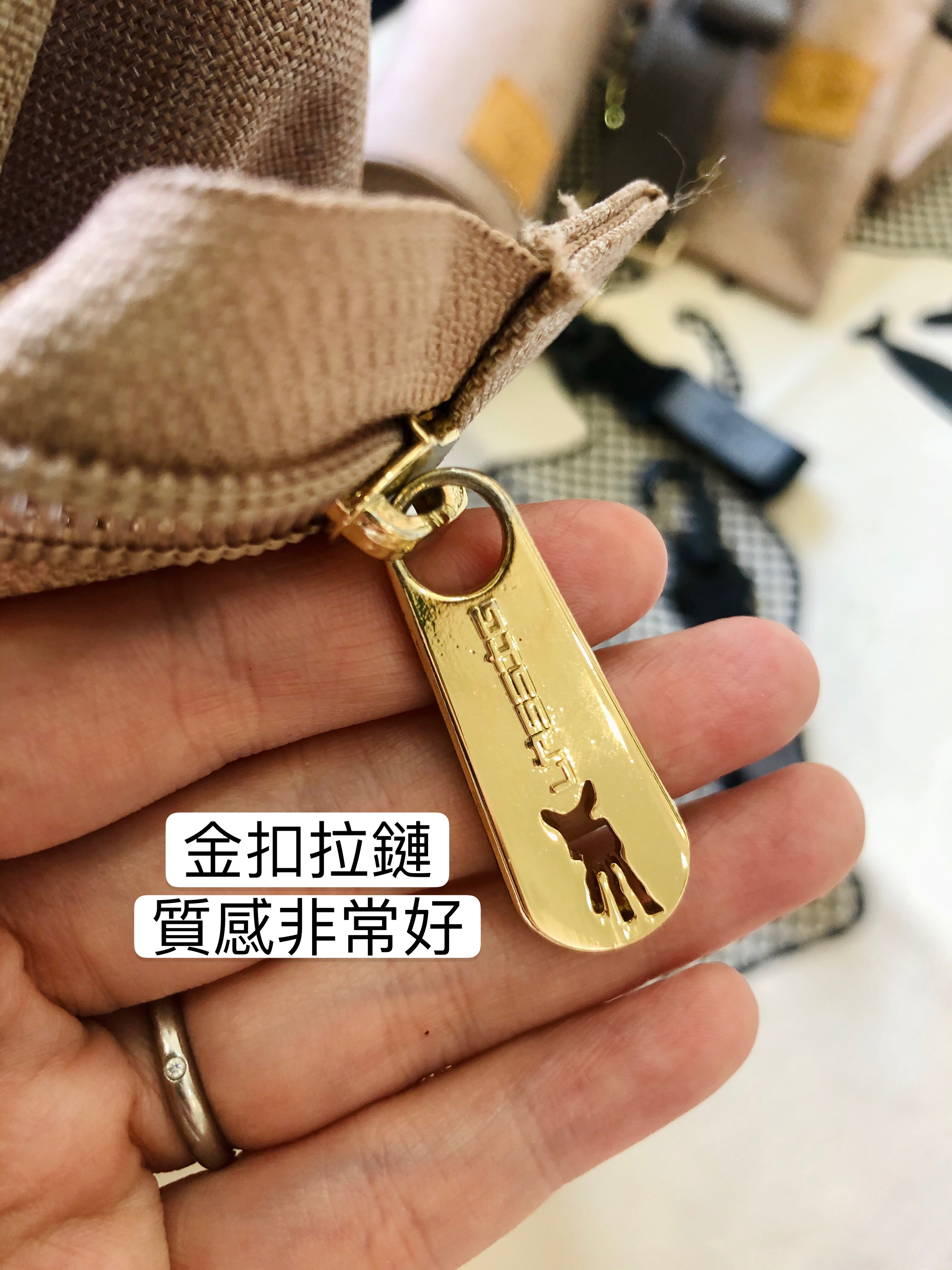 這款是金扣拉鏈刻印品牌小鹿LOGO,精緻美麗。