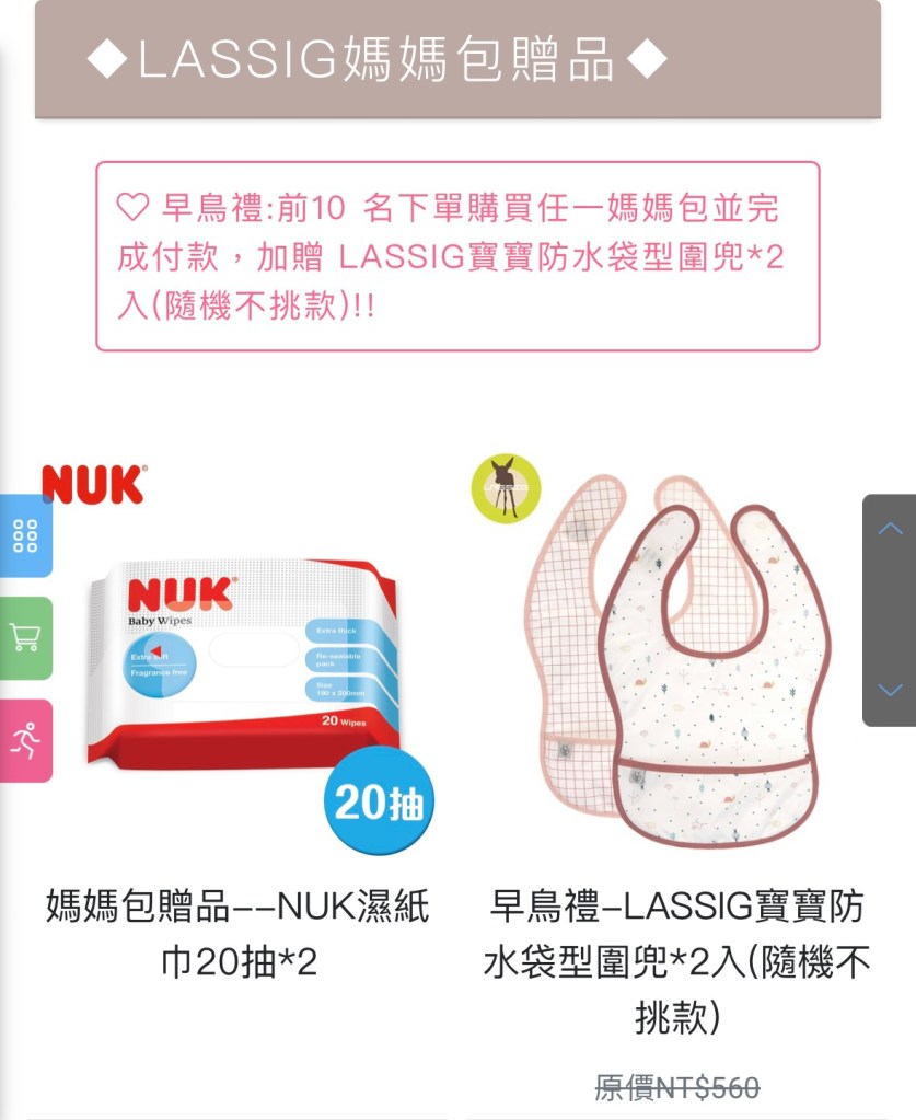 🎁早鳥禮:前10 名下單購買仼ー媽媽包並完成付款,加贈 LASSIG寶寶防水袋型圍兜*2入(隨機不挑款)!!