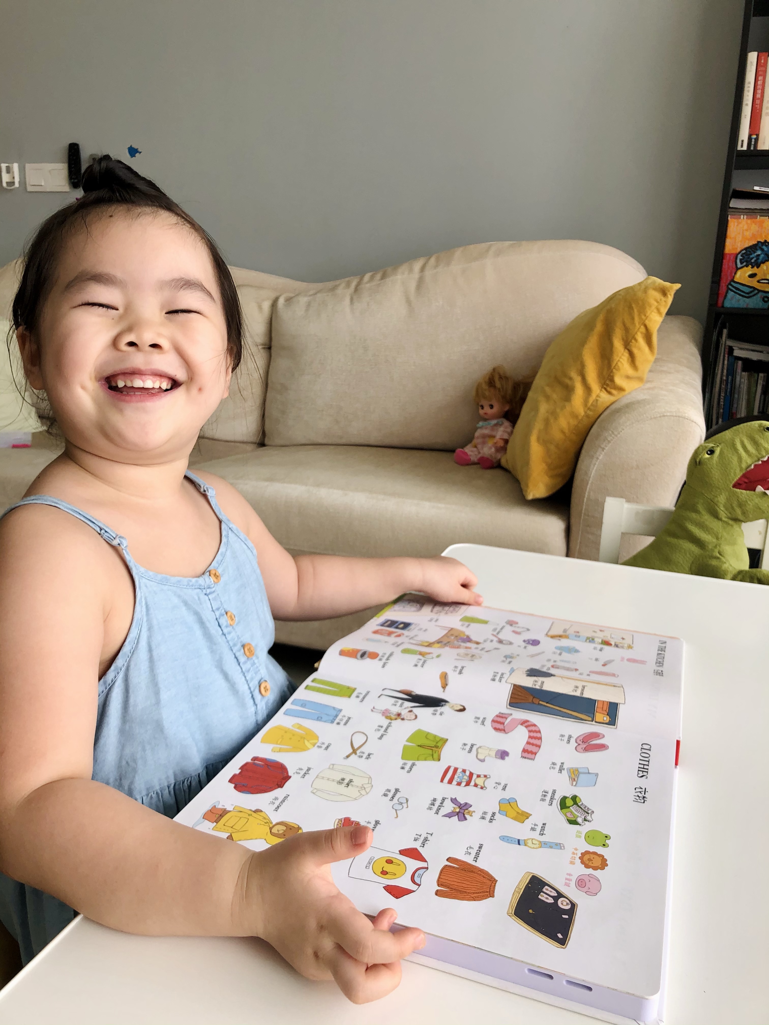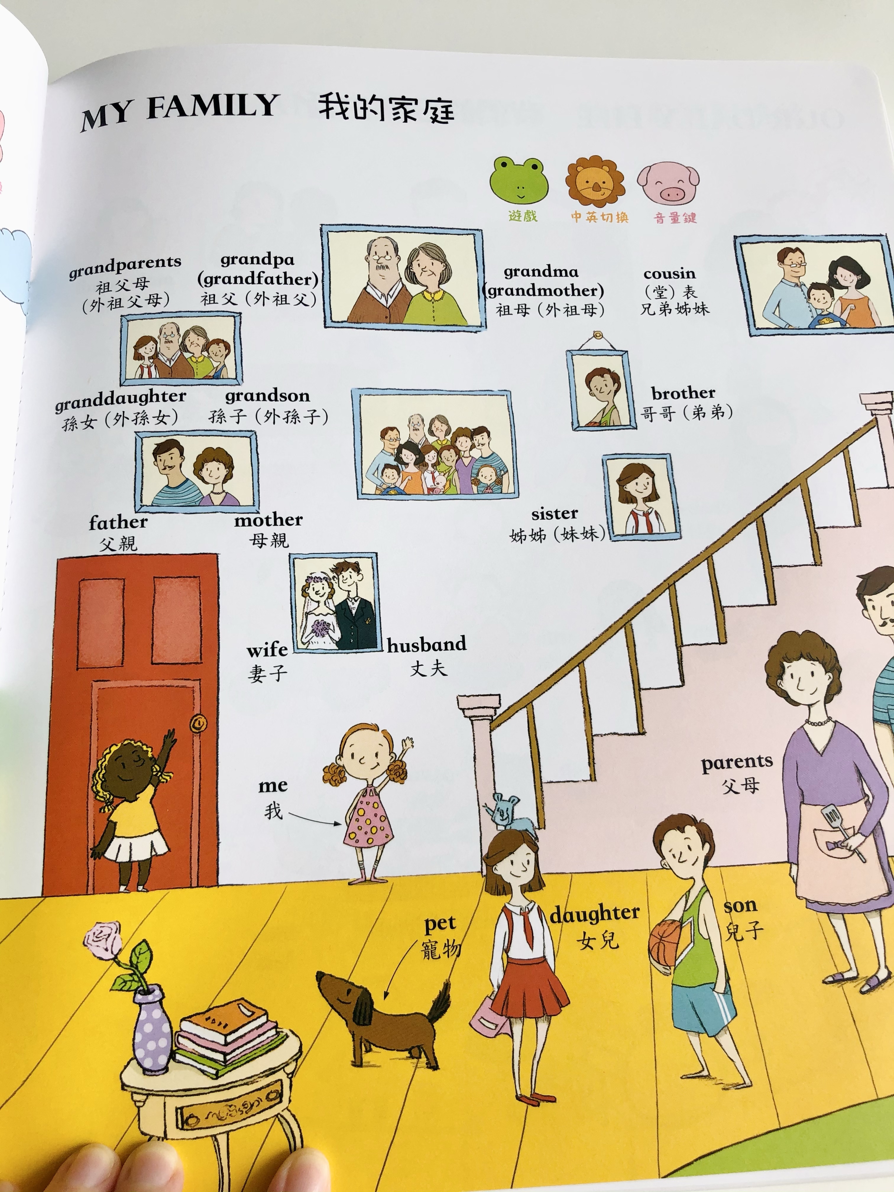 學完這本基本上日常用品和場景都能講的出來,有些常用字眼連媽媽我都忘光了,父母可以和娘娘一起學習。