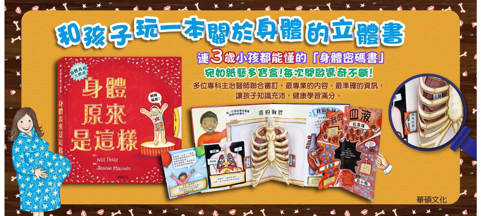 「身體原來是這樣」由英國劍橋博士范紅春醫師審訂,我家總共有三本類似介紹身體構造的立體書,這本是畫風最真實,講解最詳盡的一本。