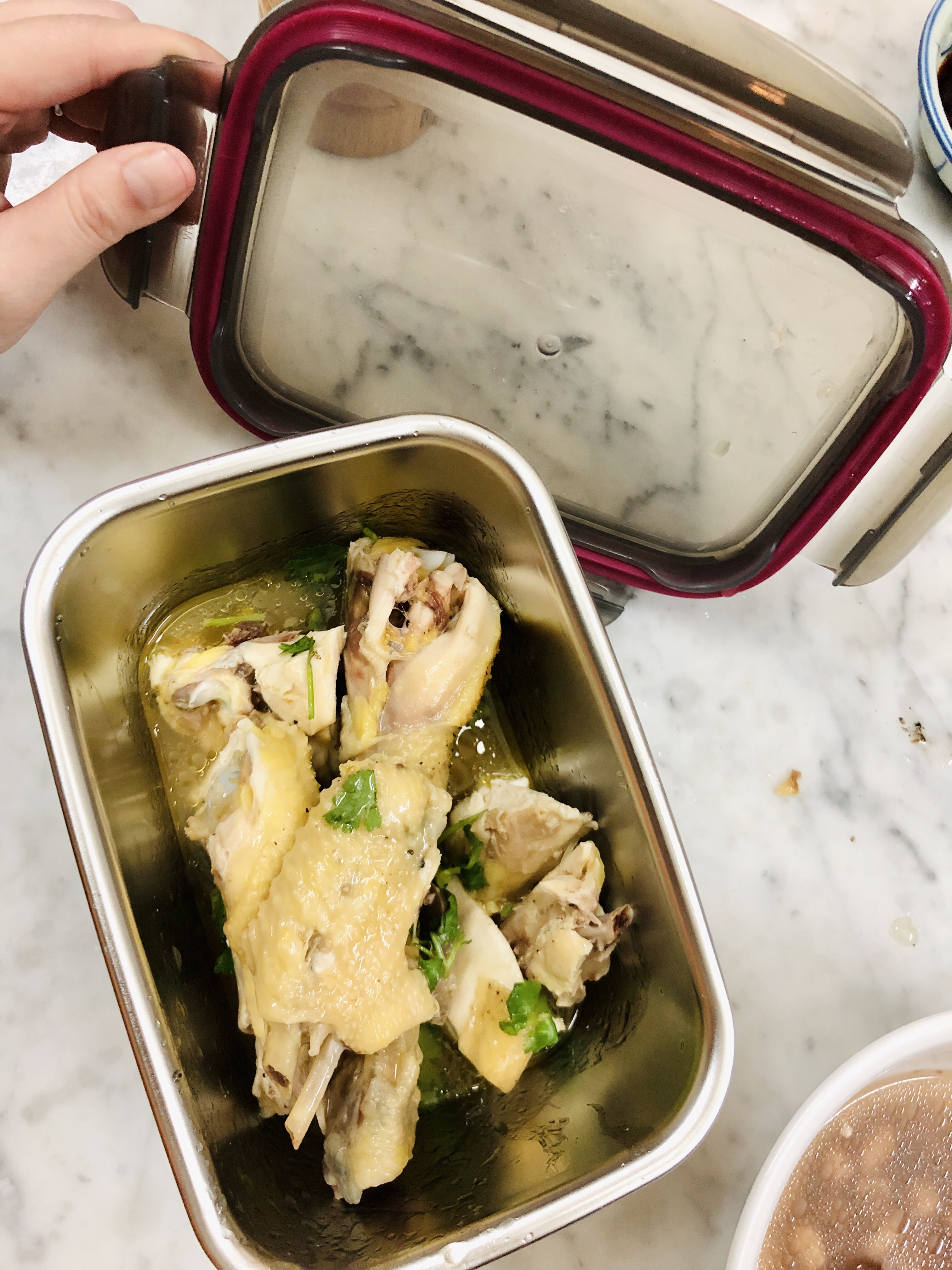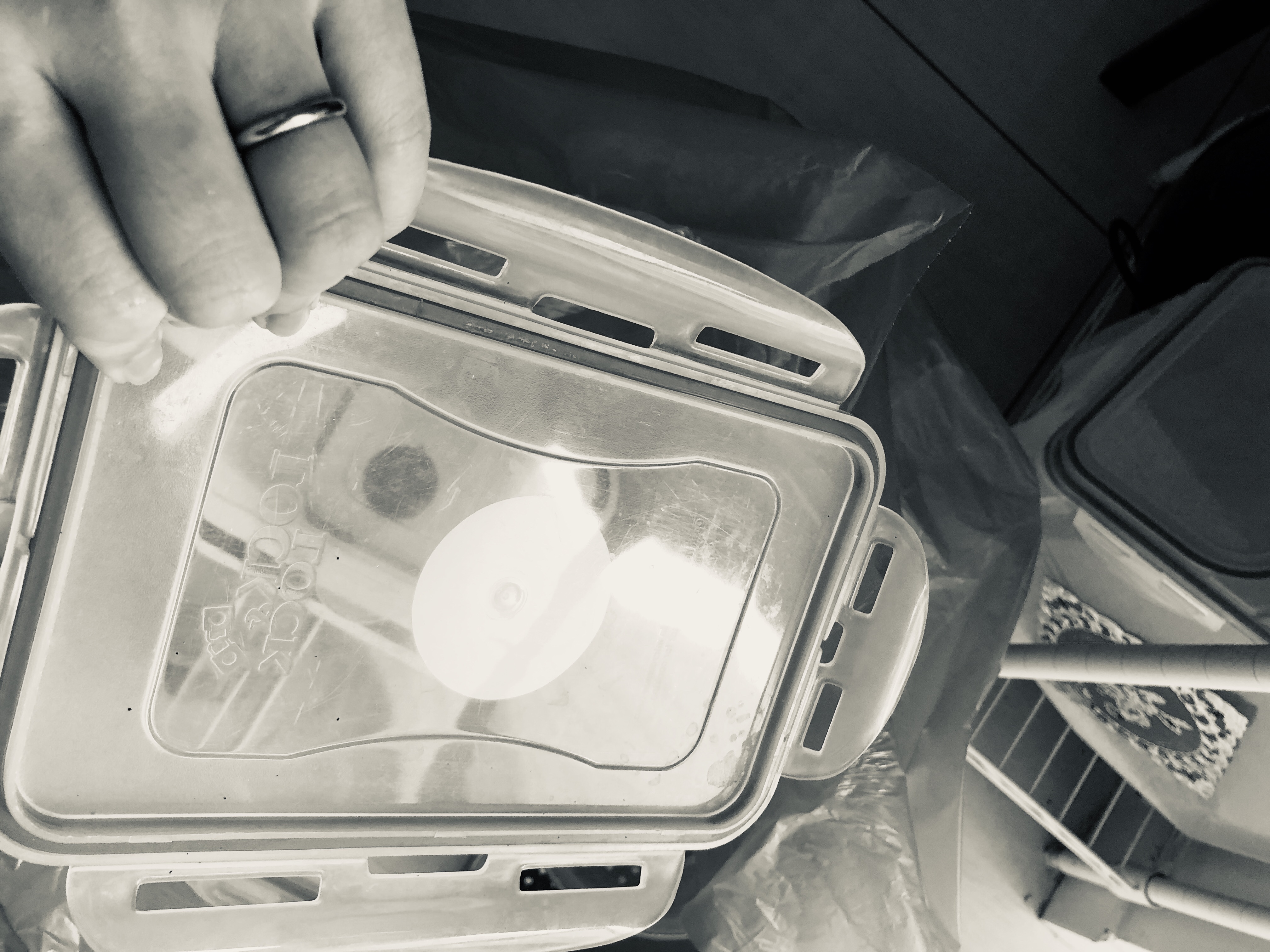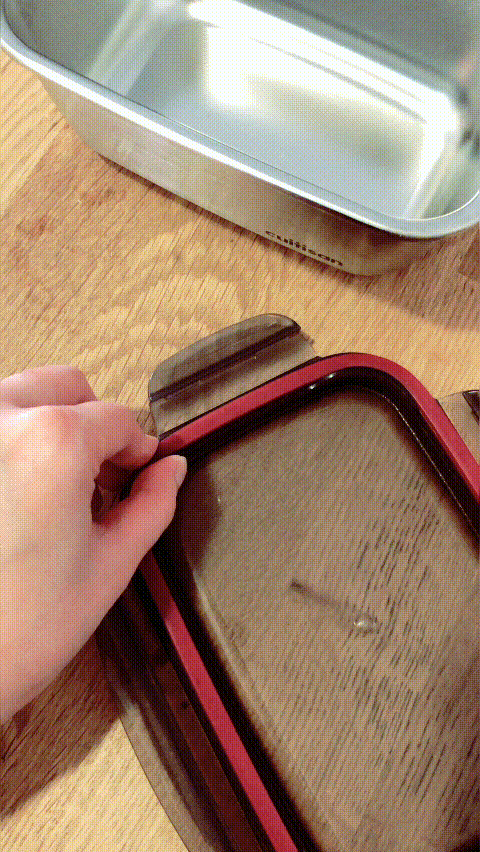 氣密式封蓋,如果裝了熱食或冷藏冷凍,拿出來蓋子很難打開,指甲掐一下膠條洩壓就可以了!