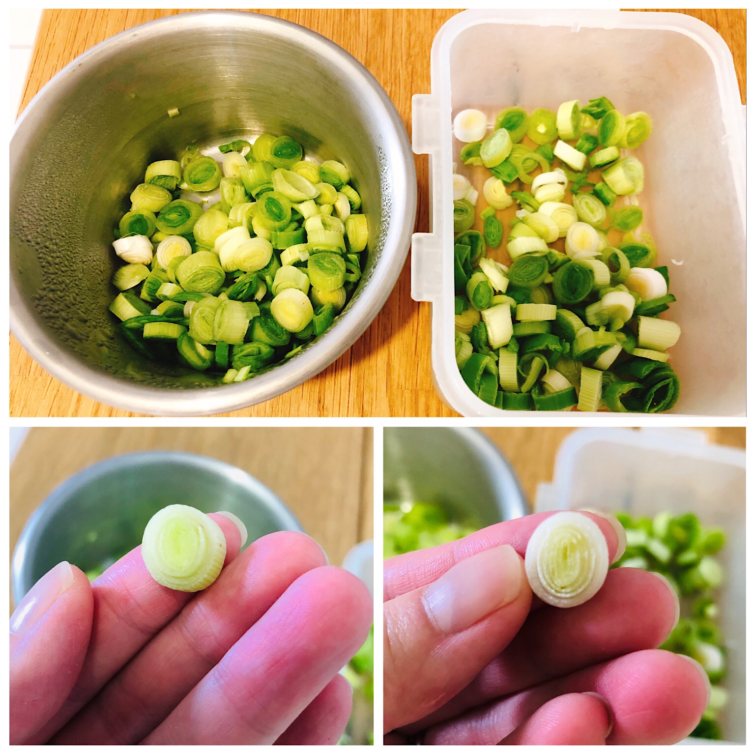 來和塑料樂扣比較一下,同樣存放在冰箱裡三天的蔥花,酷藝師保鮮盒的仍然青春水嫩,塑料保鮮盒的就已經人老珠黃。