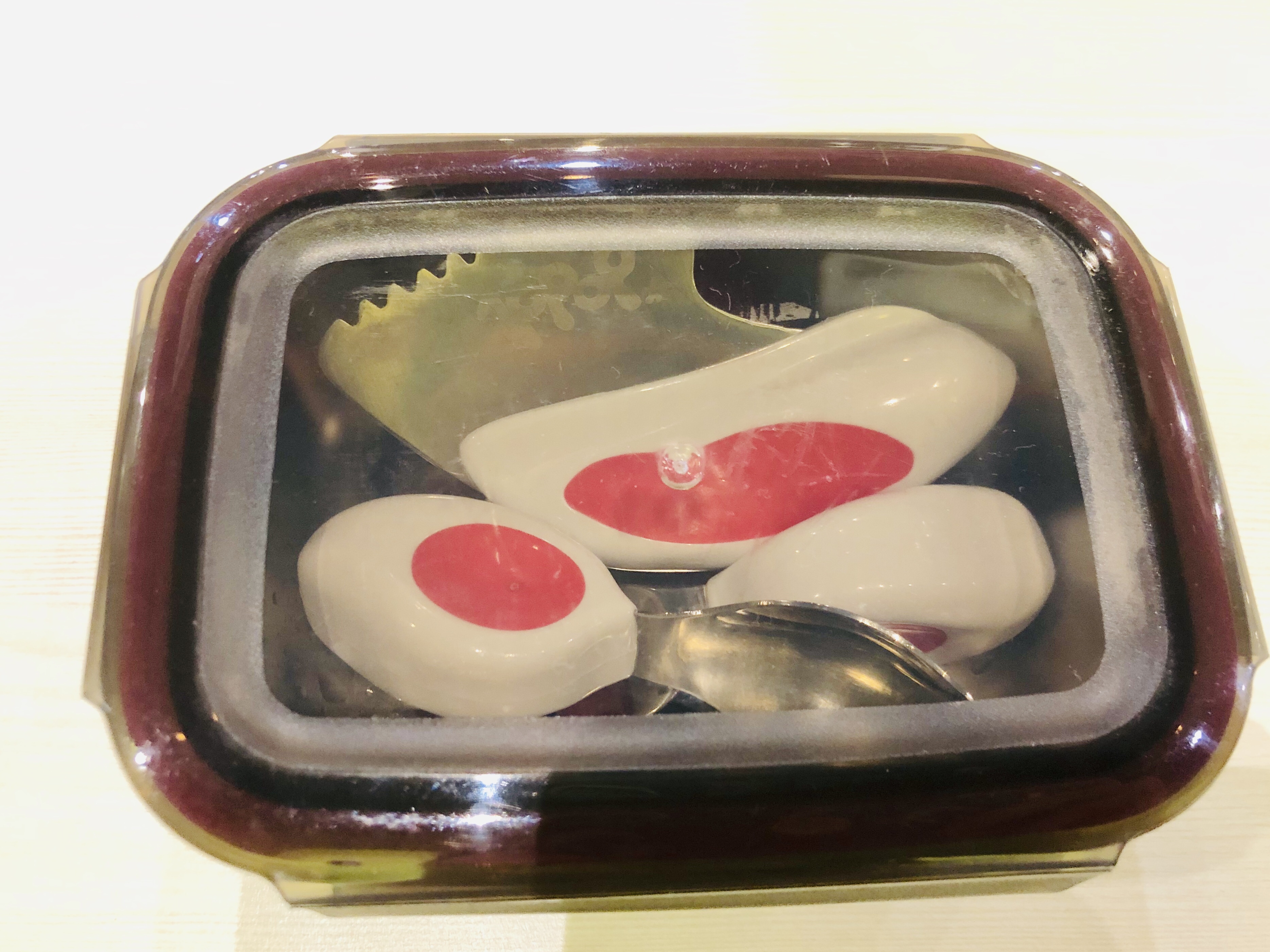 玻璃:部分強化玻璃能加熱,但時間久了也會有點怕怕,我之前就把一個舊玻璃器皿放進電鍋裡加熱結果炸掉了,心有餘悸。