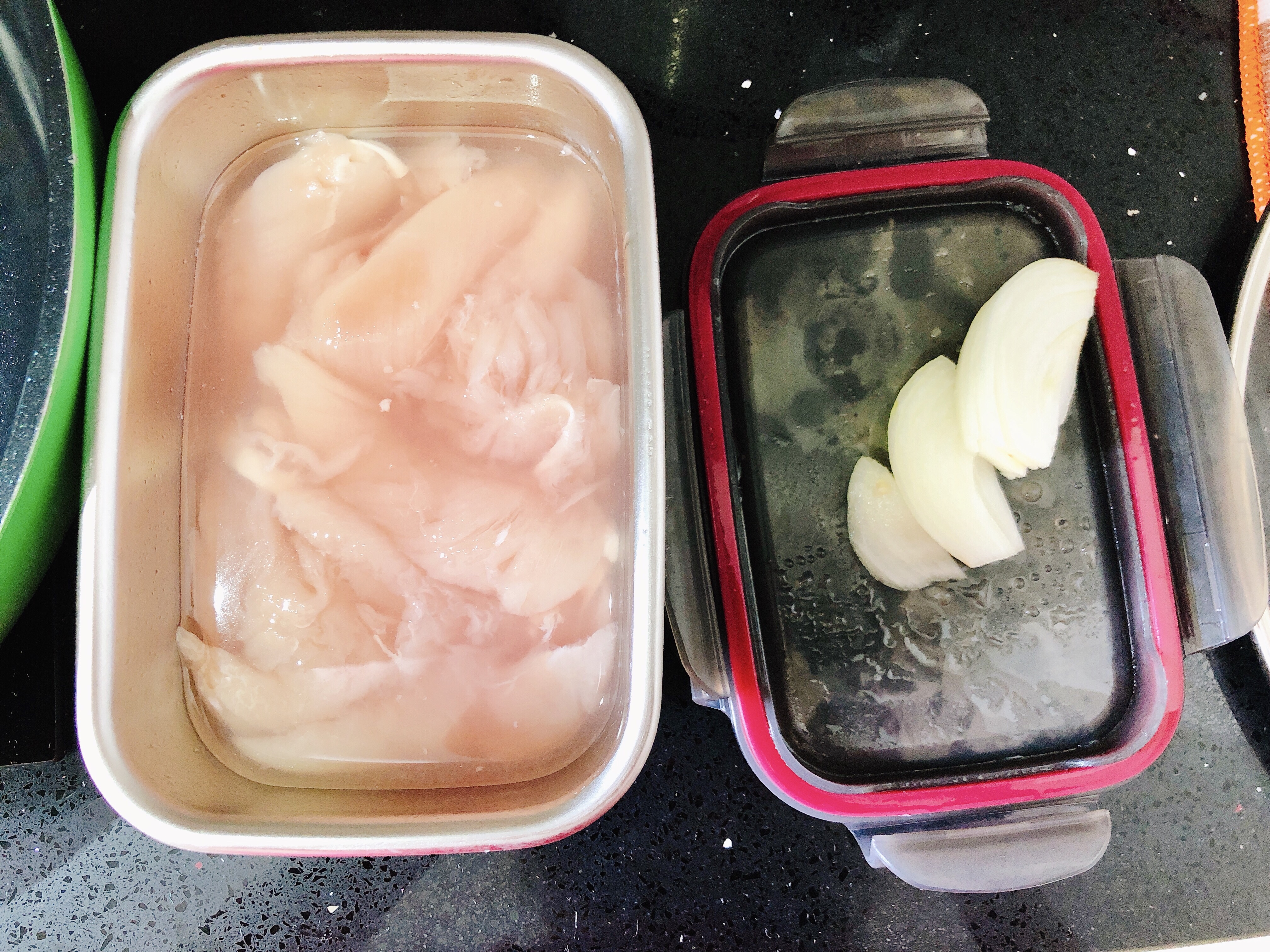 如果你最近正在減醣,醃肉備料帶便當都是好幫手,鹽水泡雞胸肉一天再拿出來,一點點油煎就超香嫩多汁!單吃或加入沙拉都很美味。