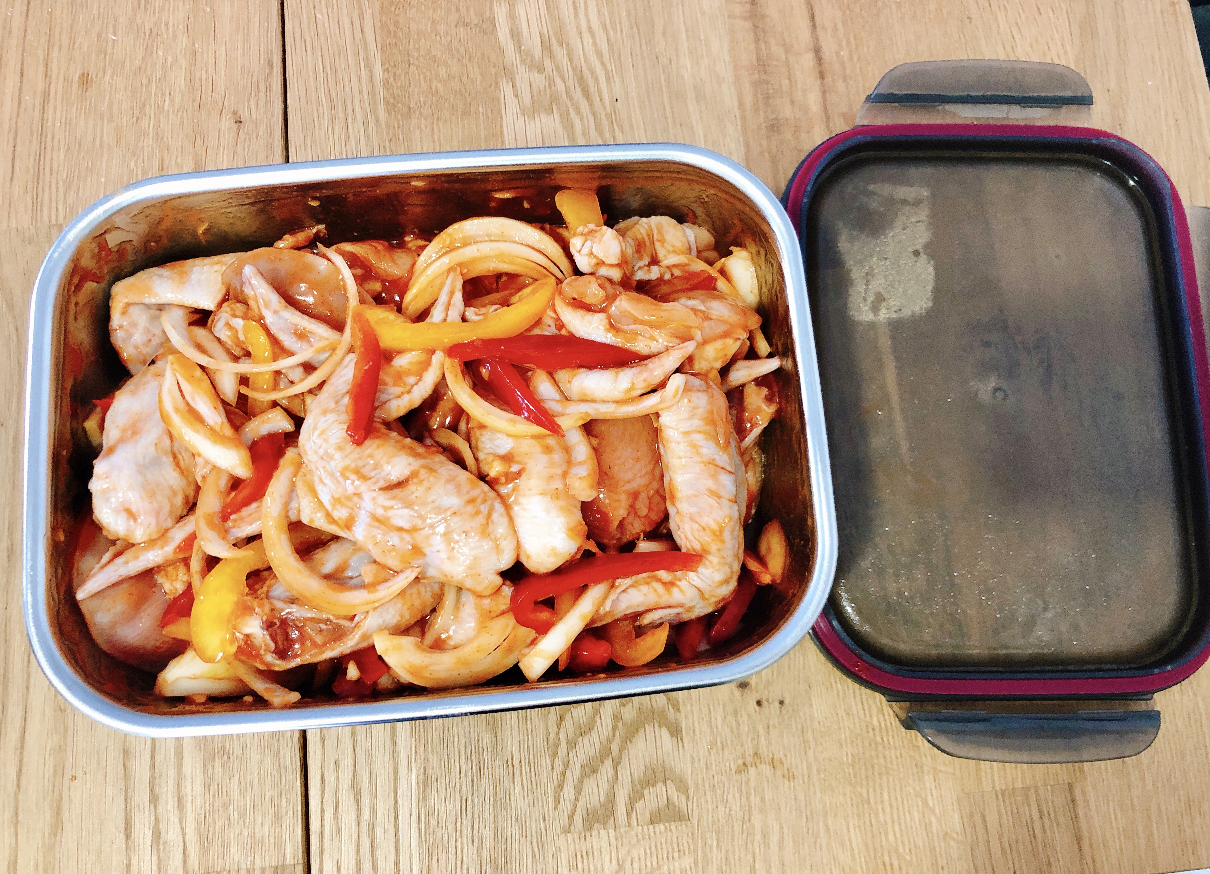 當作烤盤或醃製肉類也非常好用,這是之前中秋烤肉大會醃漬的紐奧良辣雞翅,總共醃了20隻!