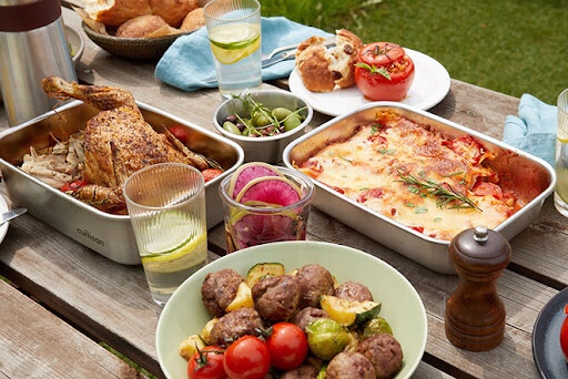 把蓋子拿掉後可微波,進烤箱,蒸鍋打包或備菜後,從冰箱直接上爐上餐桌。