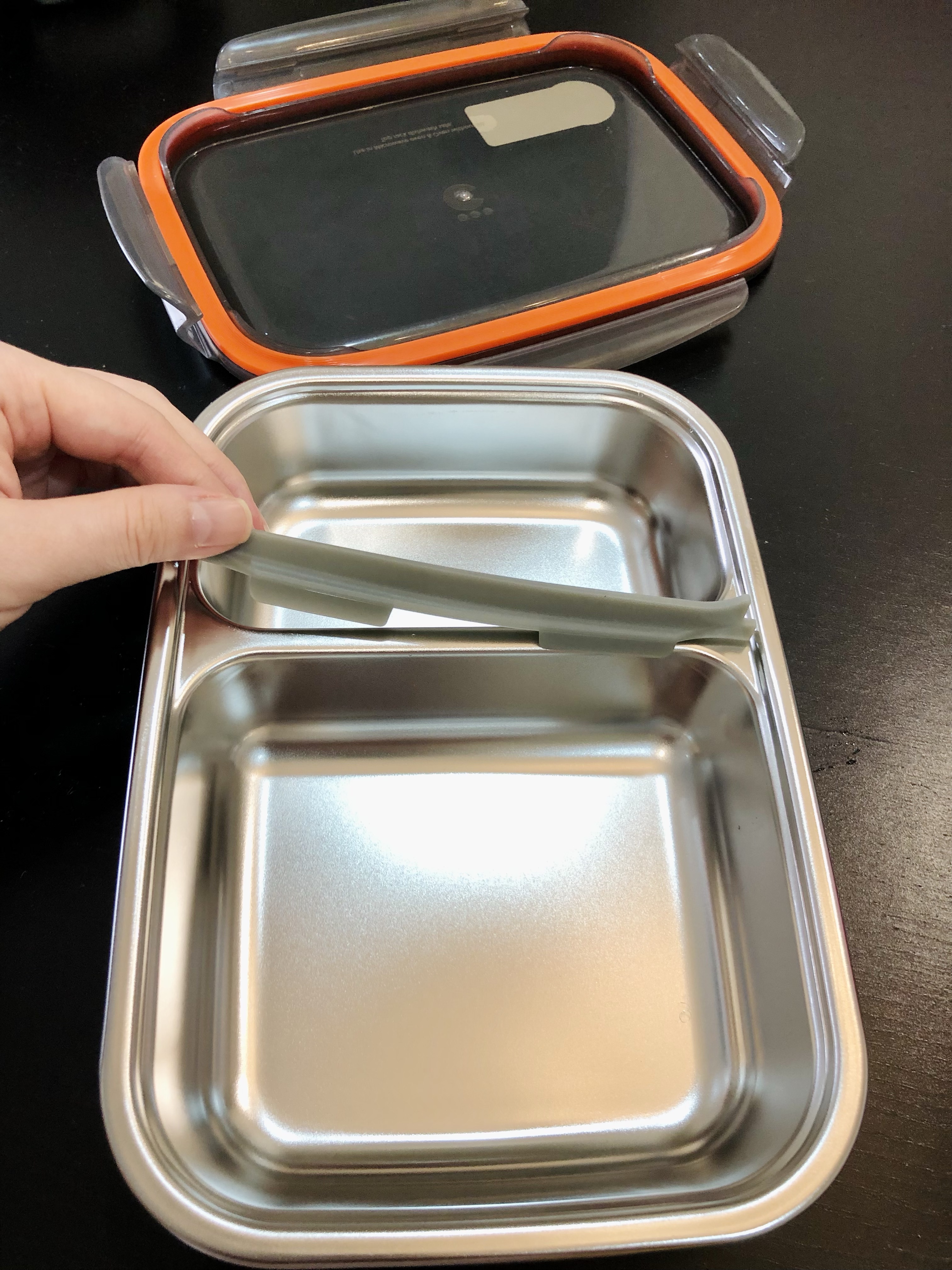 部分中間有活動式矽膠檔板,打包外帶時可以阻隔食物的湯汁氣味不會互相渲染。