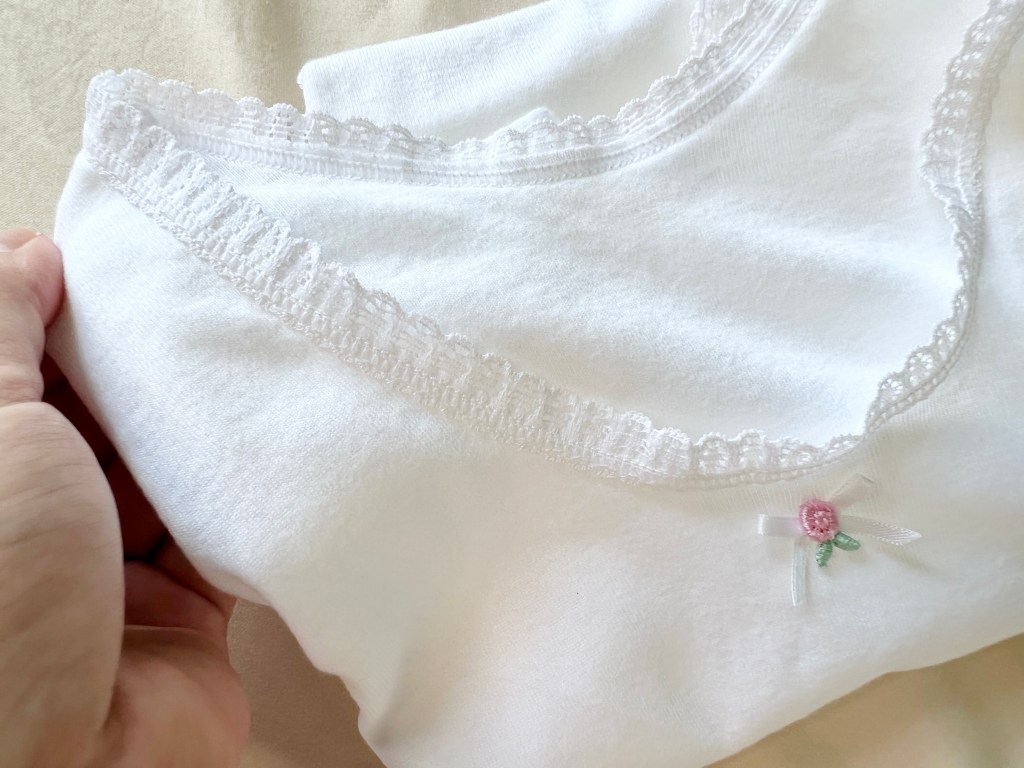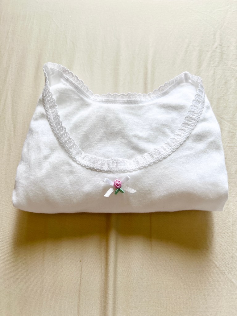 100%純棉「女童」短袖內衣(蕾絲滾邊)/女童純棉三角內褲