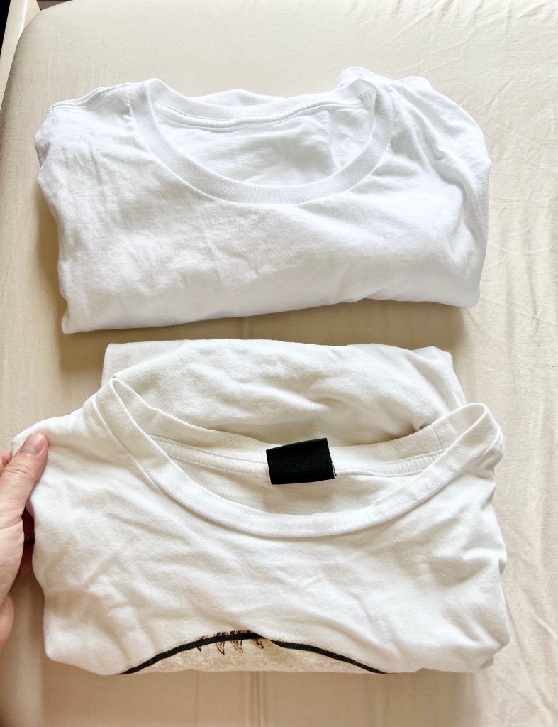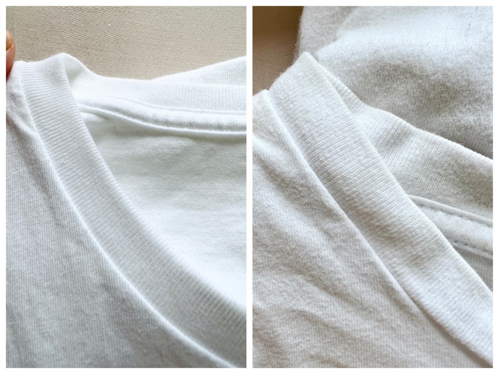 和其他T袖比較,領口特殊處理織法,洗過也不容易鬆脫。