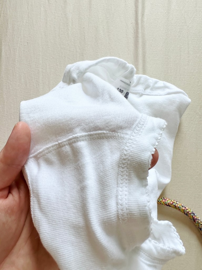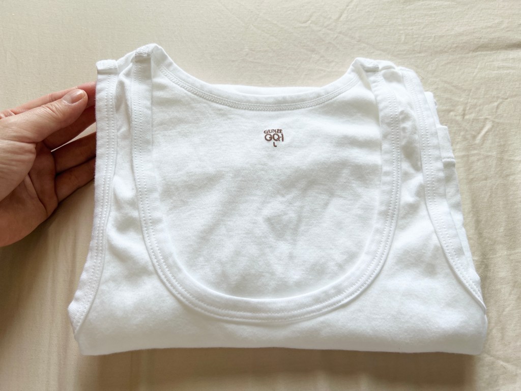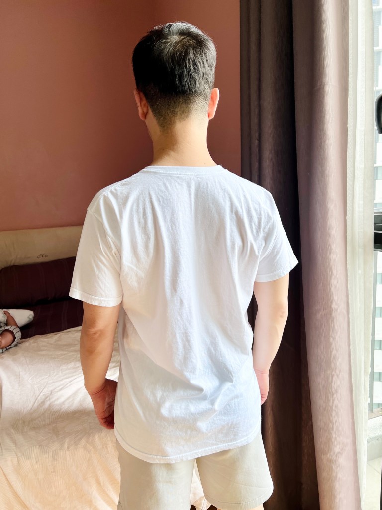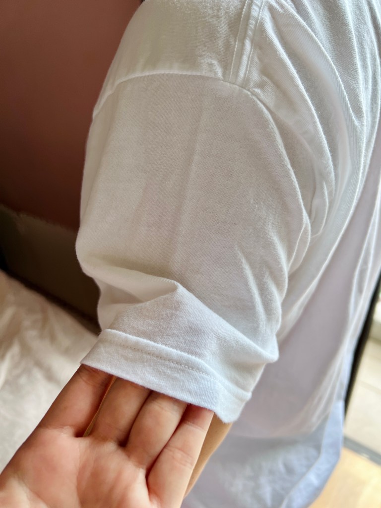 材質挺且厚實,不透肉色,不會像老兵汗衫,直接當作白T穿出門也沒問題,倒垃圾時就是全場最體面的老公。