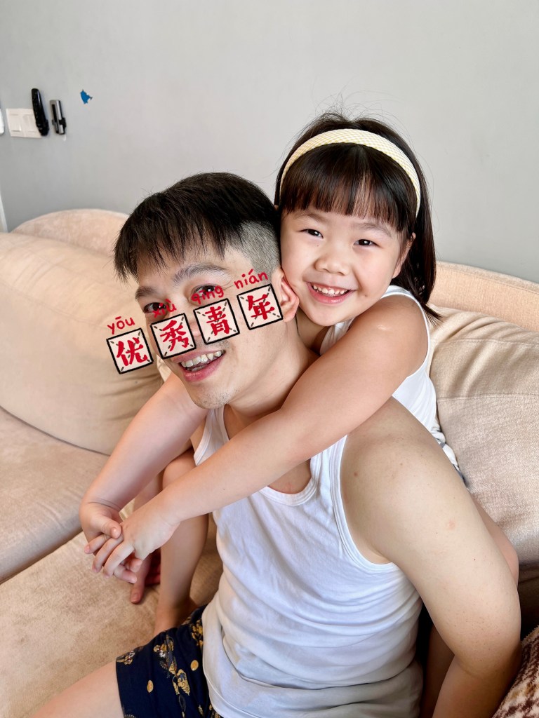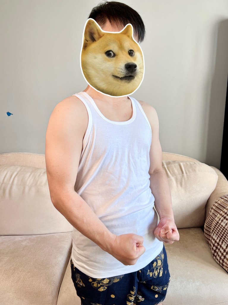 中年男子表示我也是有肌肉的(臉部表情扭曲)