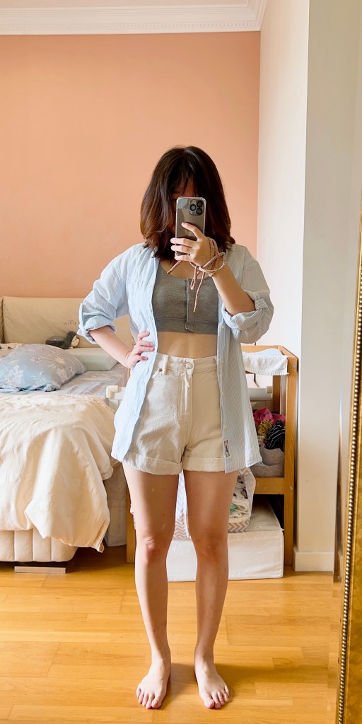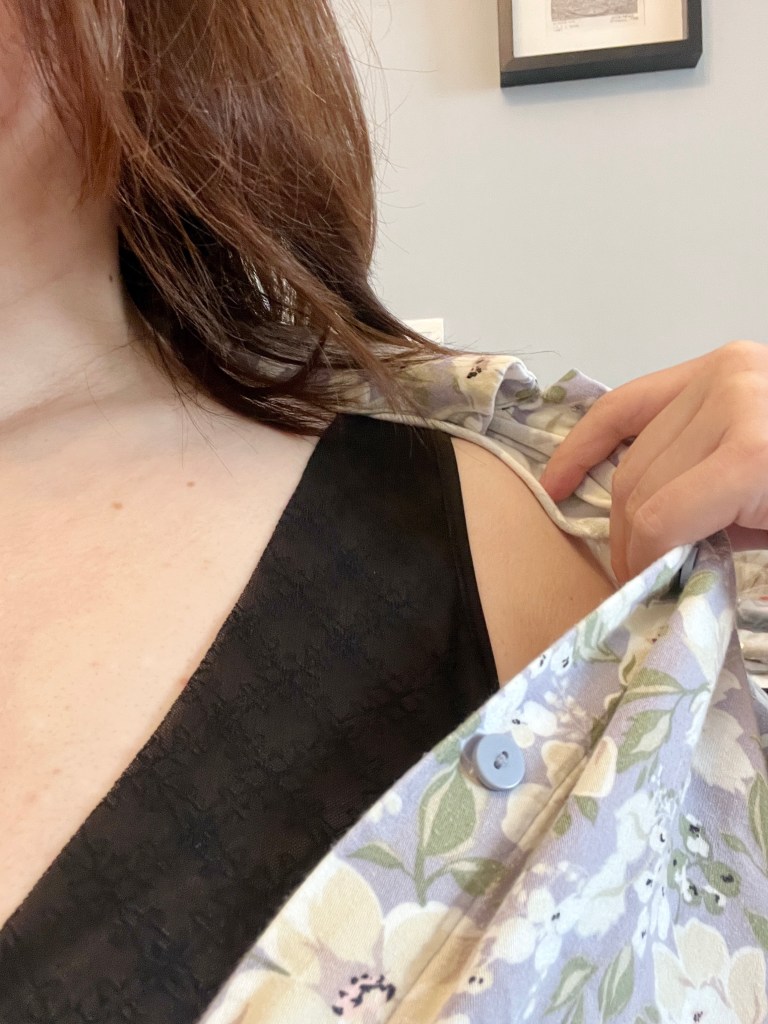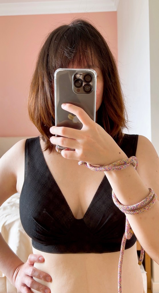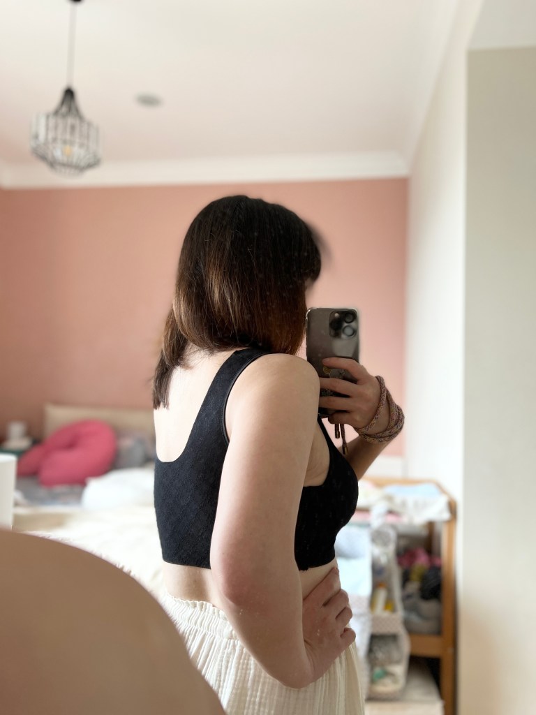 穿這款前開式的胸衣哺乳很方便,特別喜歡這款穿起來舒適又不顯胸部巨大的特性。(胸部巨大穿衣服真的不好看啊🥲)
