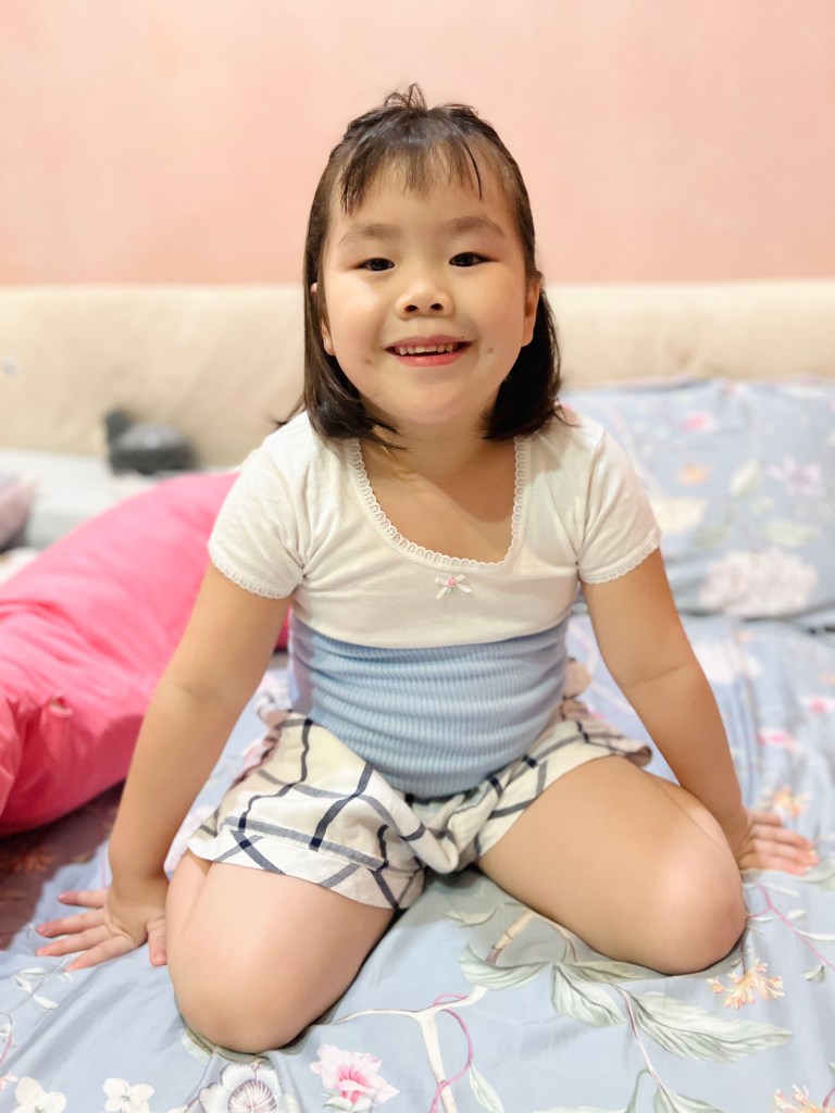 娘娘現在是116公分/26公斤,偏胖肚子大,內衣穿120,內褲130。