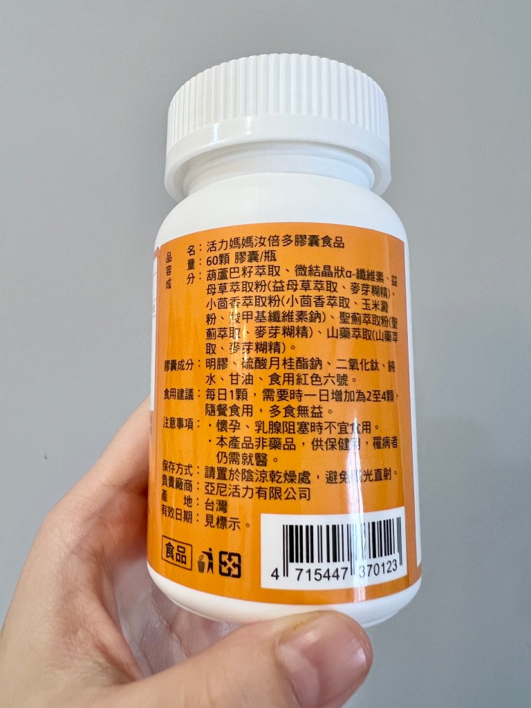 和媽媽茶一樣要注意胸部是沒有塞奶、沒有硬塊的情況下才可以食用,膠囊罐子上面也有特別提醒。