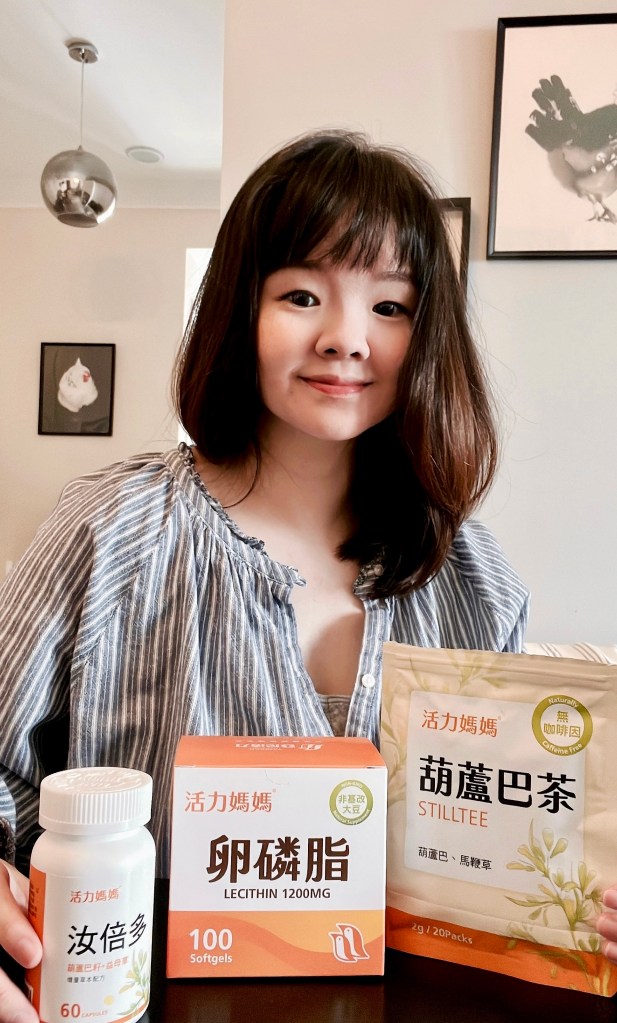 另外也要記得補充養分,現在每日早餐後我都會吃2顆活力媽媽卵磷脂,1顆葫蘆巴膠囊和幾種維他命。