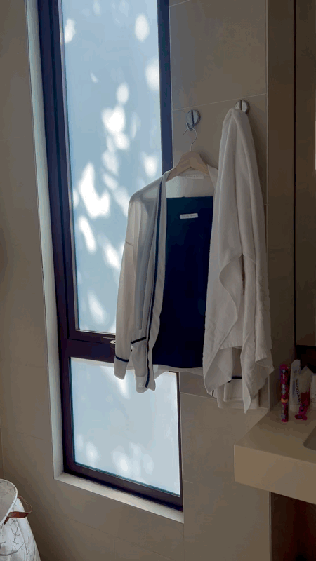 天氣晴朗的日子,洗手間窗戶枝木扶疏,光影搖曳,每次看到心情都很好。