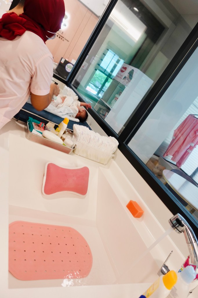 隔離室里有單獨空調,洗手盆和用具,新手父母學習替嬰兒洗澡時也能確保沒有細菌交叉感染。