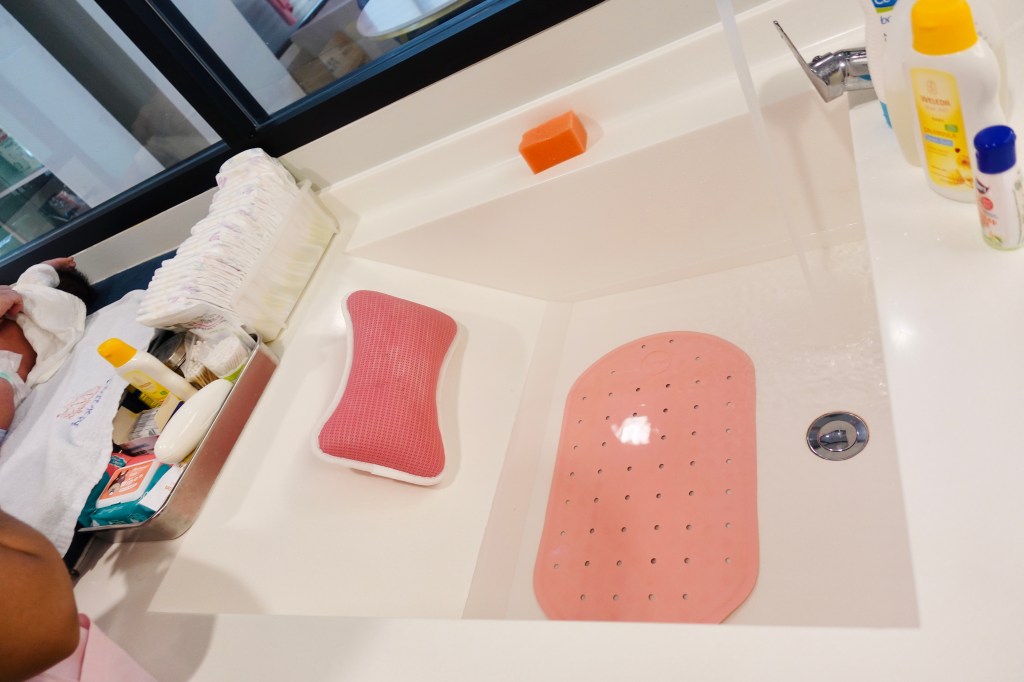 隔離室和育嬰室的洗澡盆都是根據台灣尺寸標準特製,幫新生兒洗澡時安全方便。