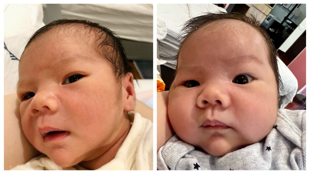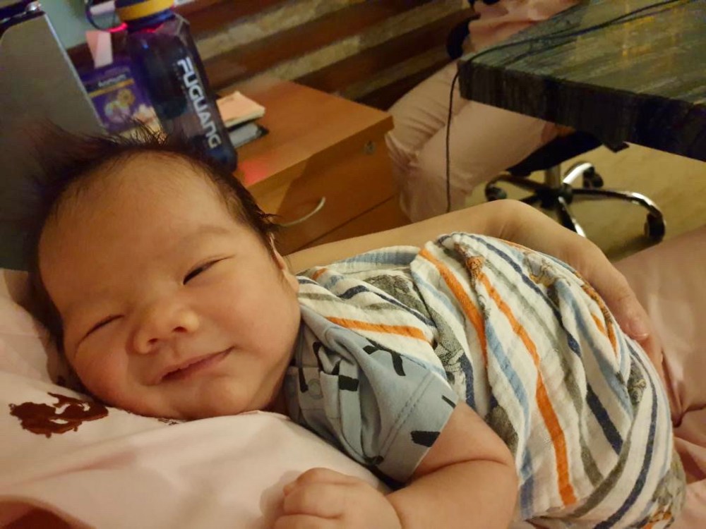 小少爺住了一個月被照料的很好,體重從2.3kg長到4.5kg,頭好壯壯。