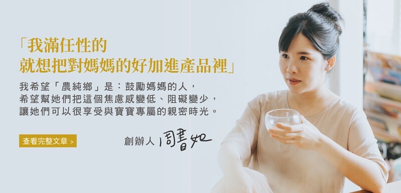台灣農純鄉品牌創辦人周書如,本身也是二寶媽,創立以來堅持「做好食物給全家人吃」的信念,嚴選真材食料,守護全家人健康。