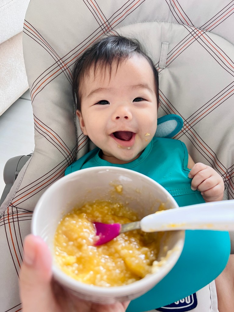 小少爺比姐姐愛吃,對農純鄉寶寶粥非常買單,六個月起開始吃。