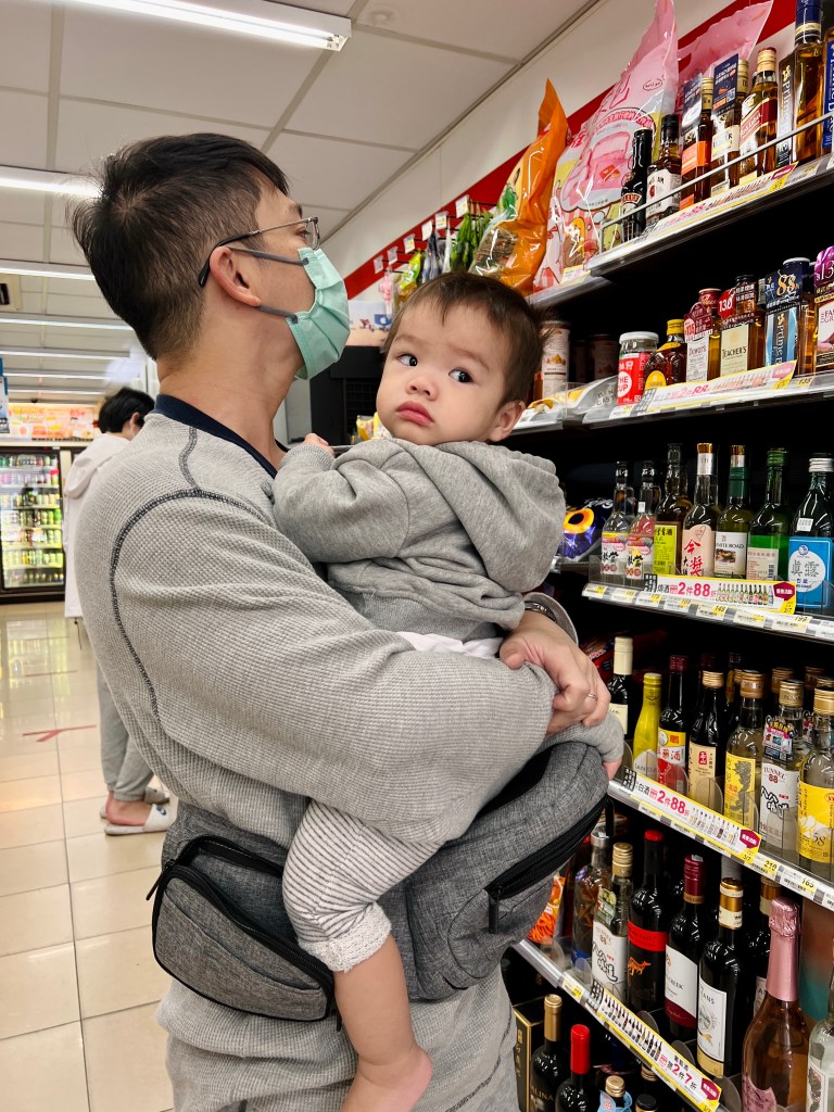回台灣一打二,我都是使用Tushbaby腰凳包,帶孩子出門吃早餐,去超市買東西都非常方便!